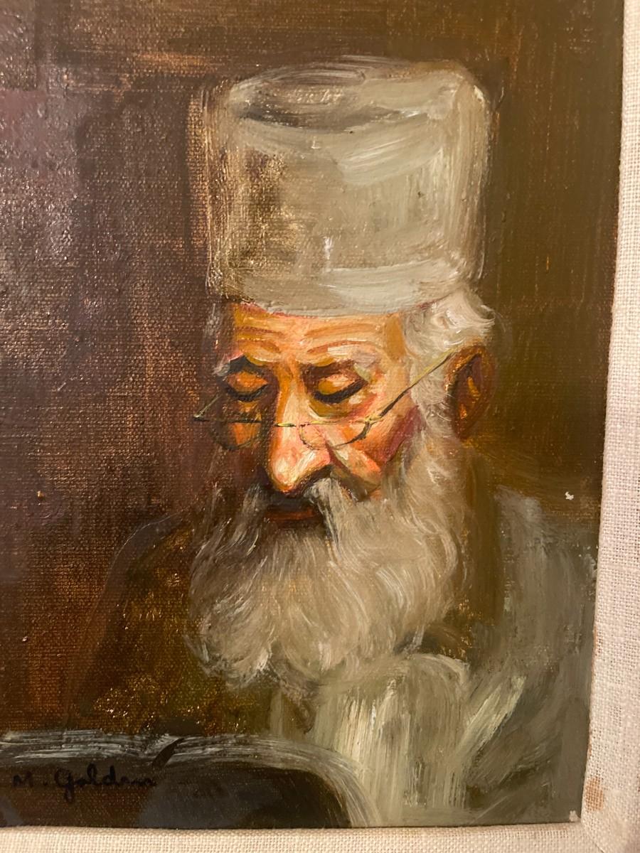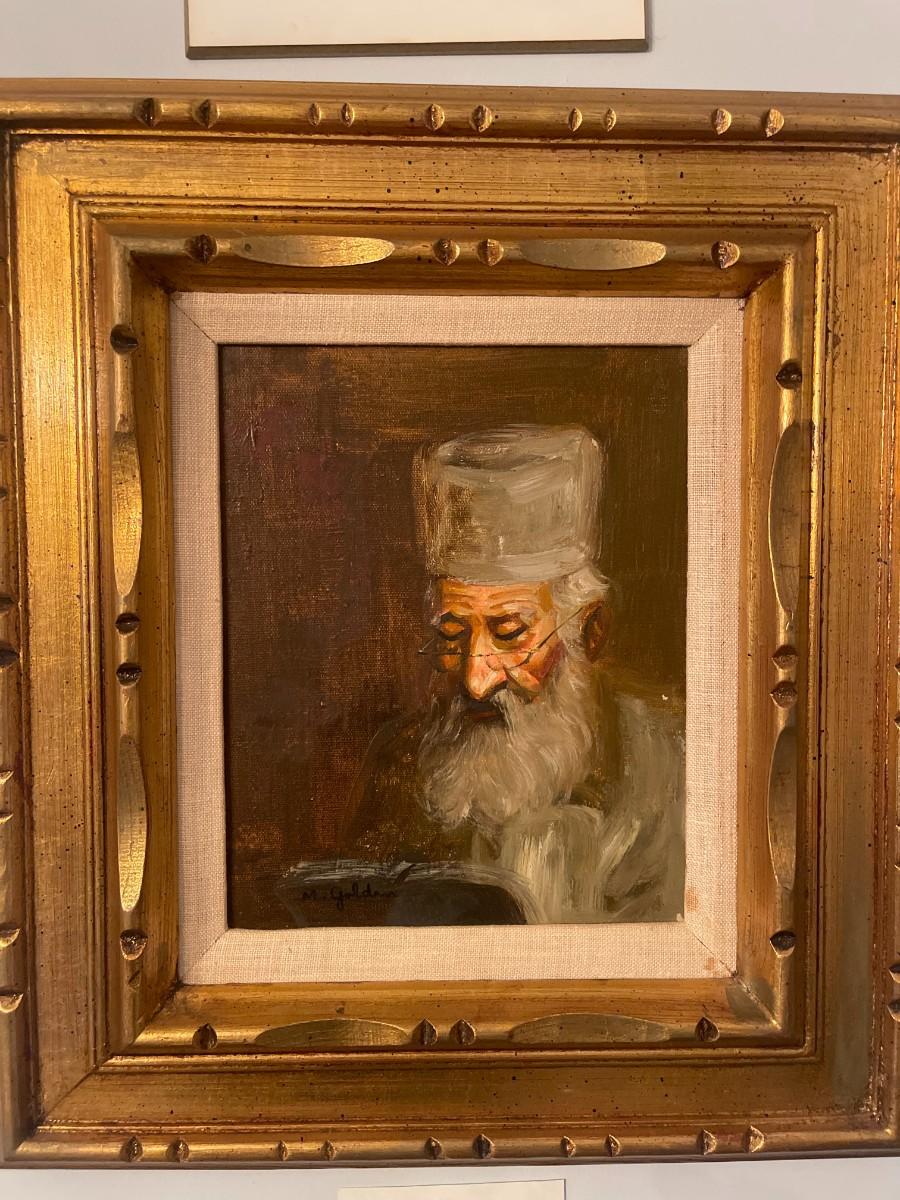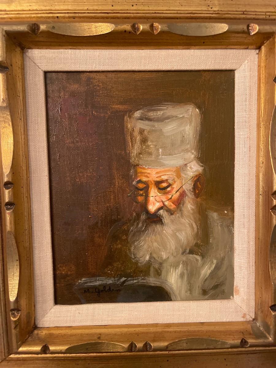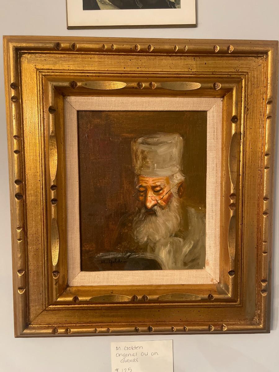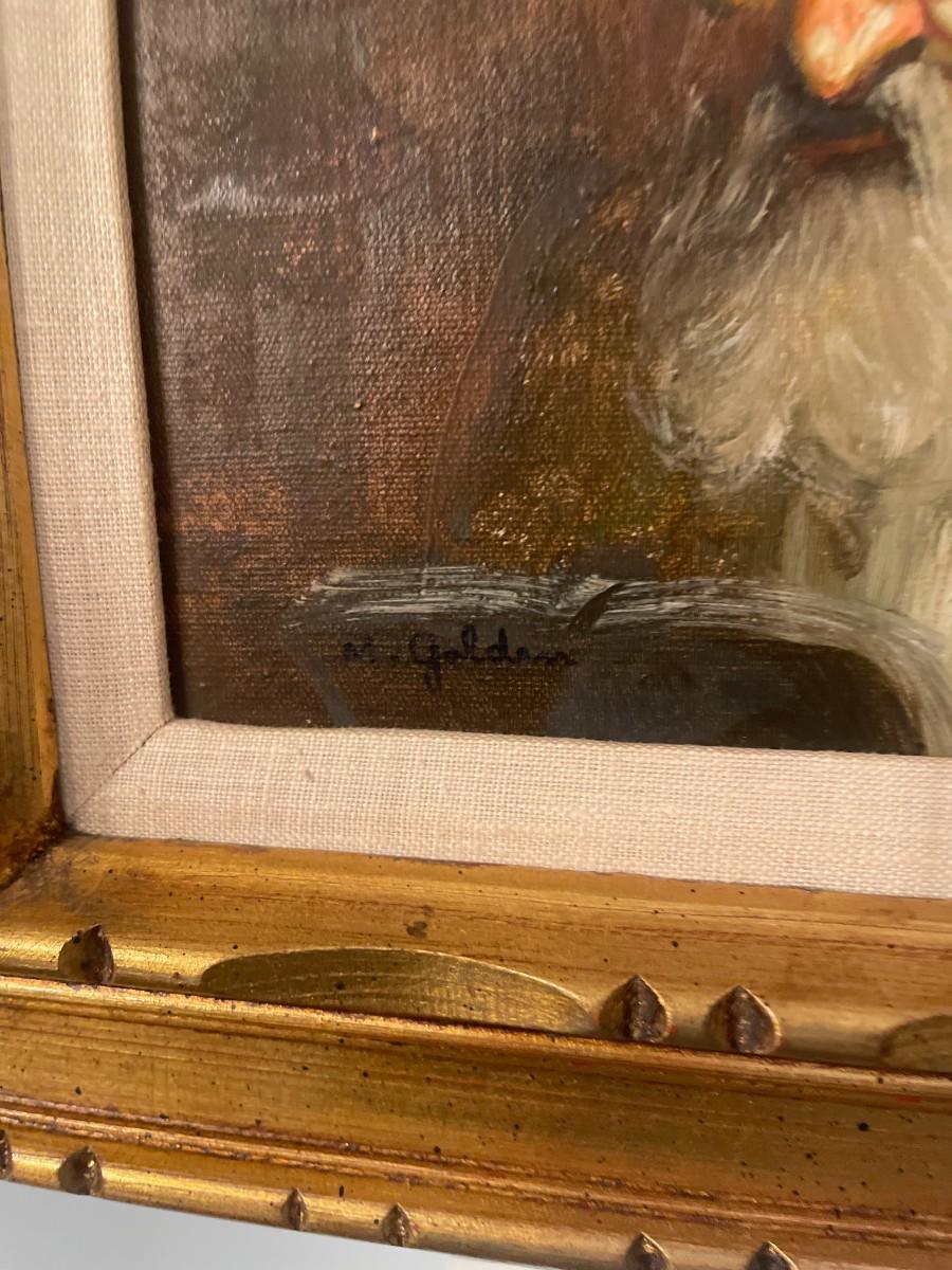 M Golden Original Oil on Canvas. Framed 16" x 18"; Inside Mount: 9 1/2" x 7 1/2"