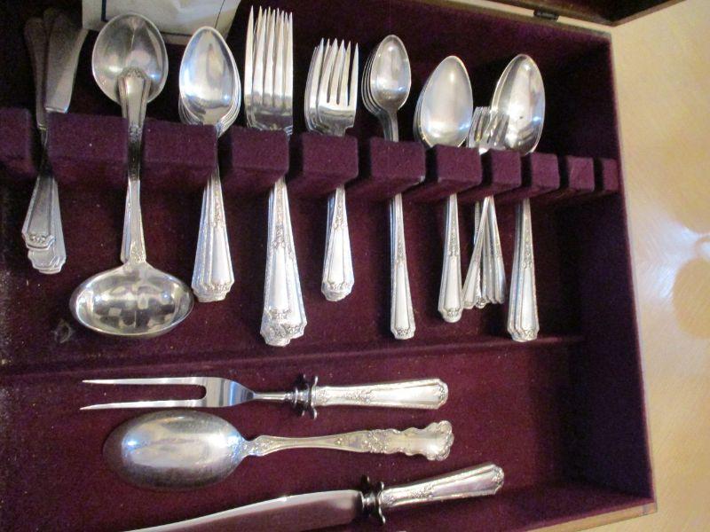 78 Pieces. Sterling silverware. Note 7 pieces in plastic are not sterling. Pat 1924.