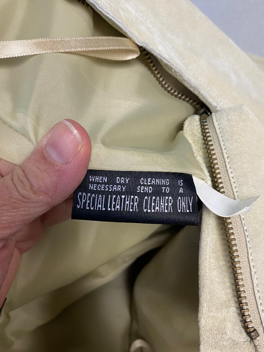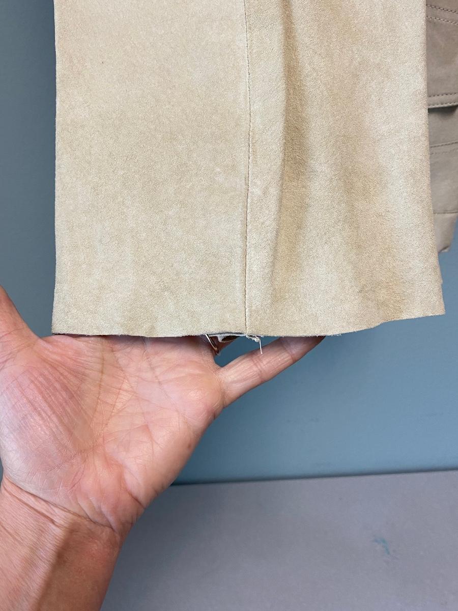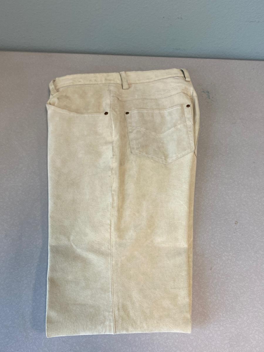 M. Julian for Wilsons off white/cream colored suede leather pants. Size 32. In good worn condition, no spots or stains. May have light wear to the leather.