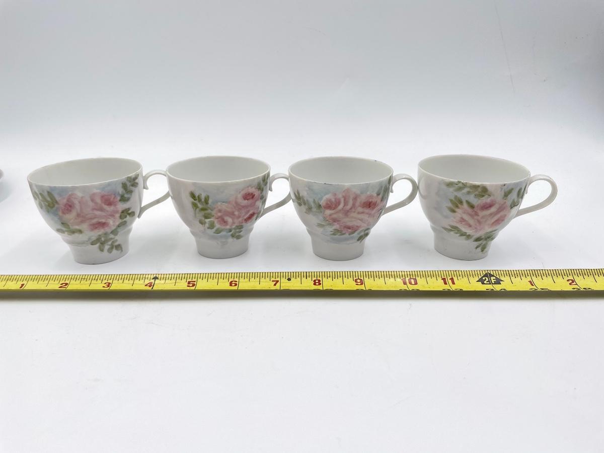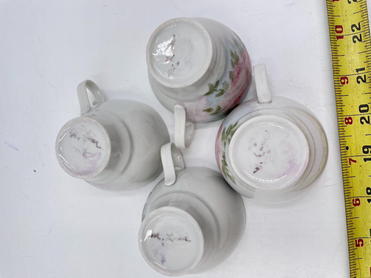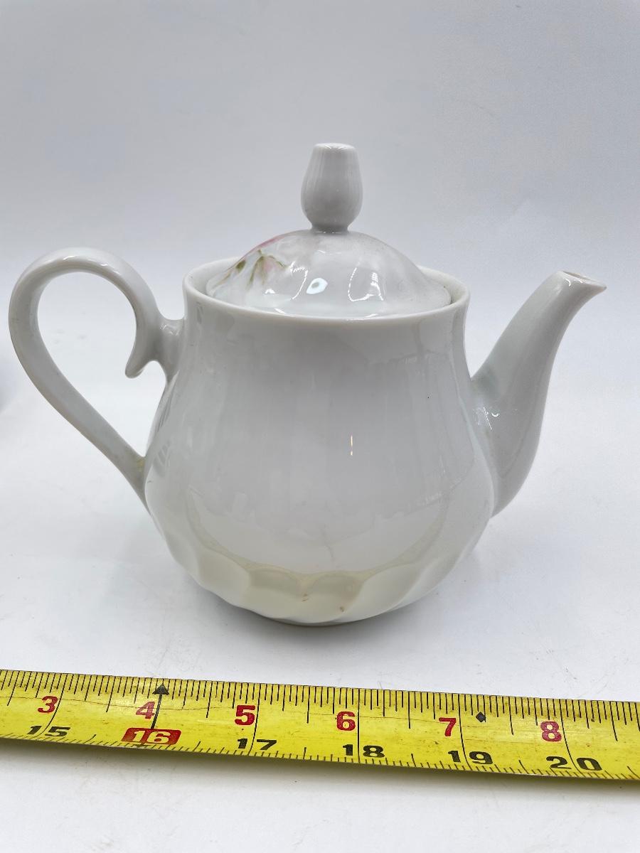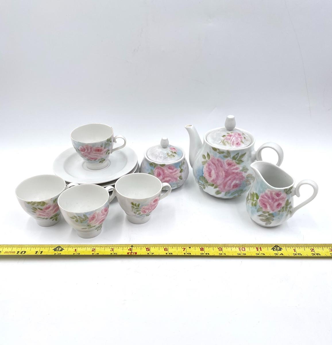 Lovely set - includes 1 small teapot, 1 sugar dish, 1 creamer dish, 4 teacups, and 4 saucers. All marked on the bottom with “M. LANE”