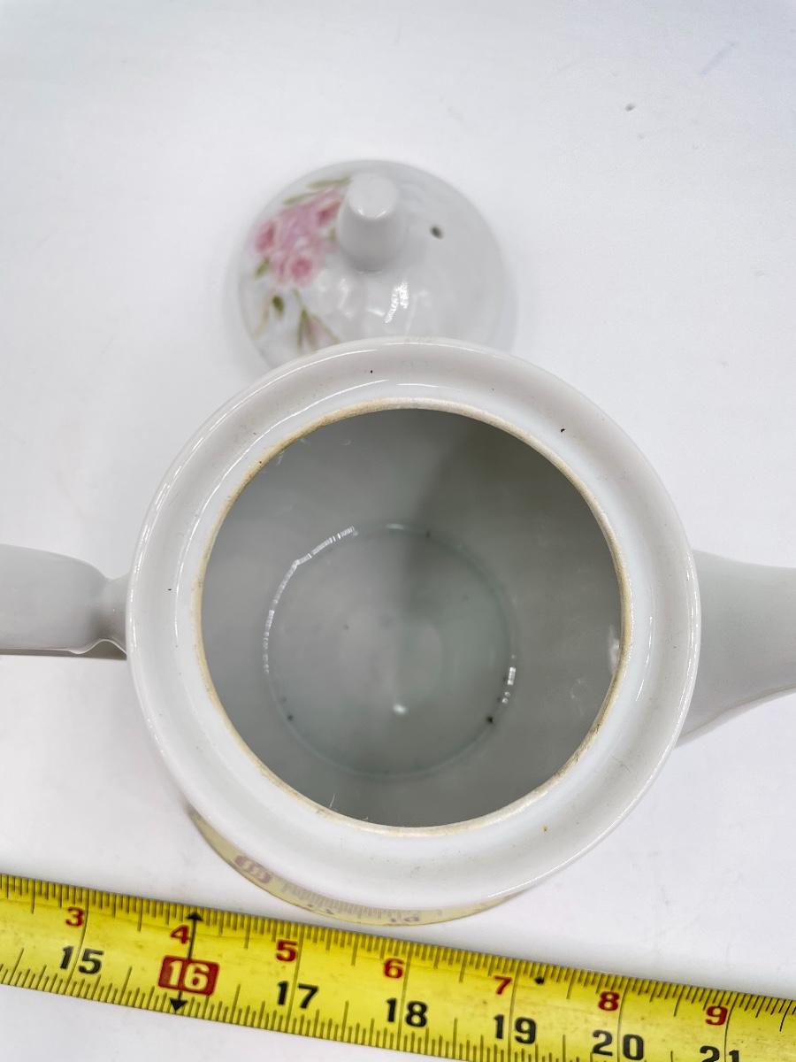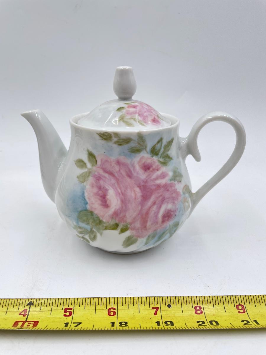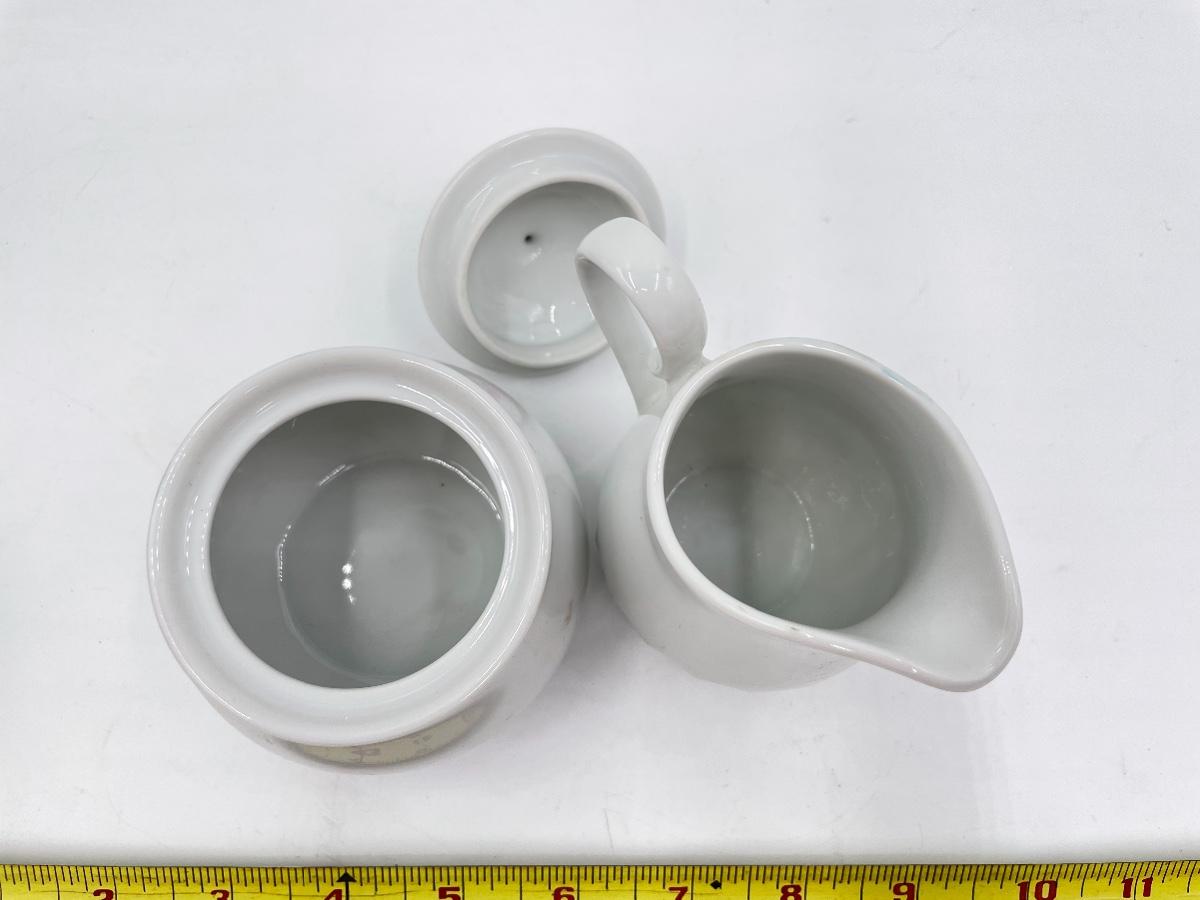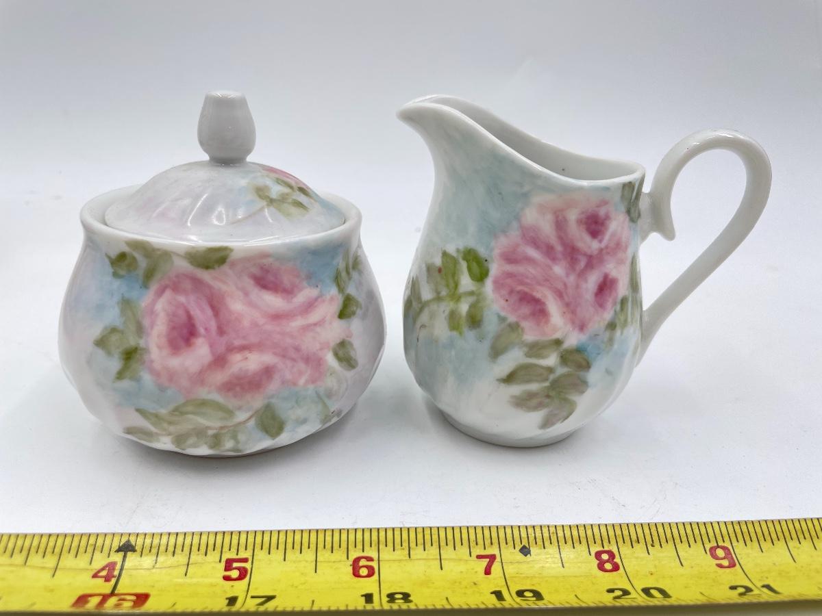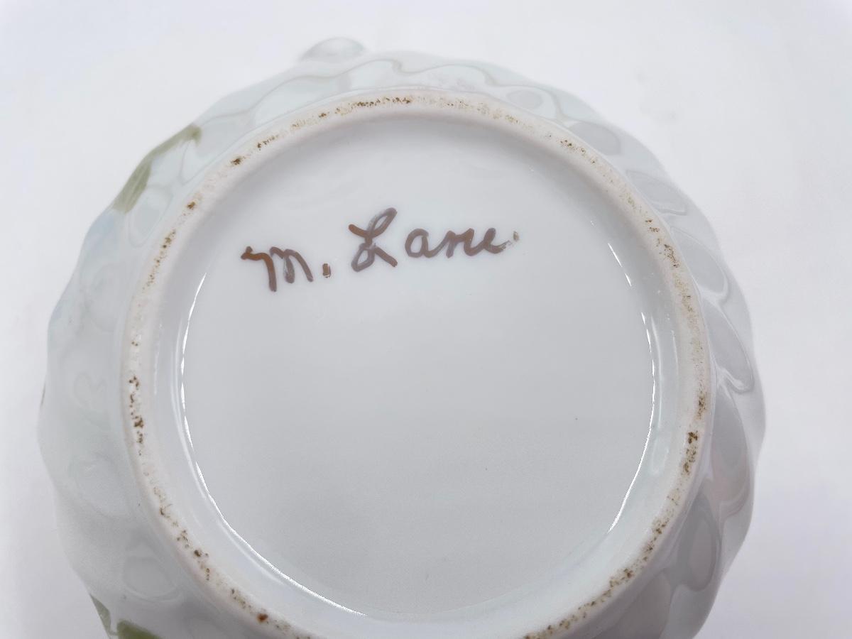 Lovely set - includes 1 small teapot, 1 sugar dish, 1 creamer dish, 4 teacups, and 4 saucers. All marked on the bottom with “M. LANE”