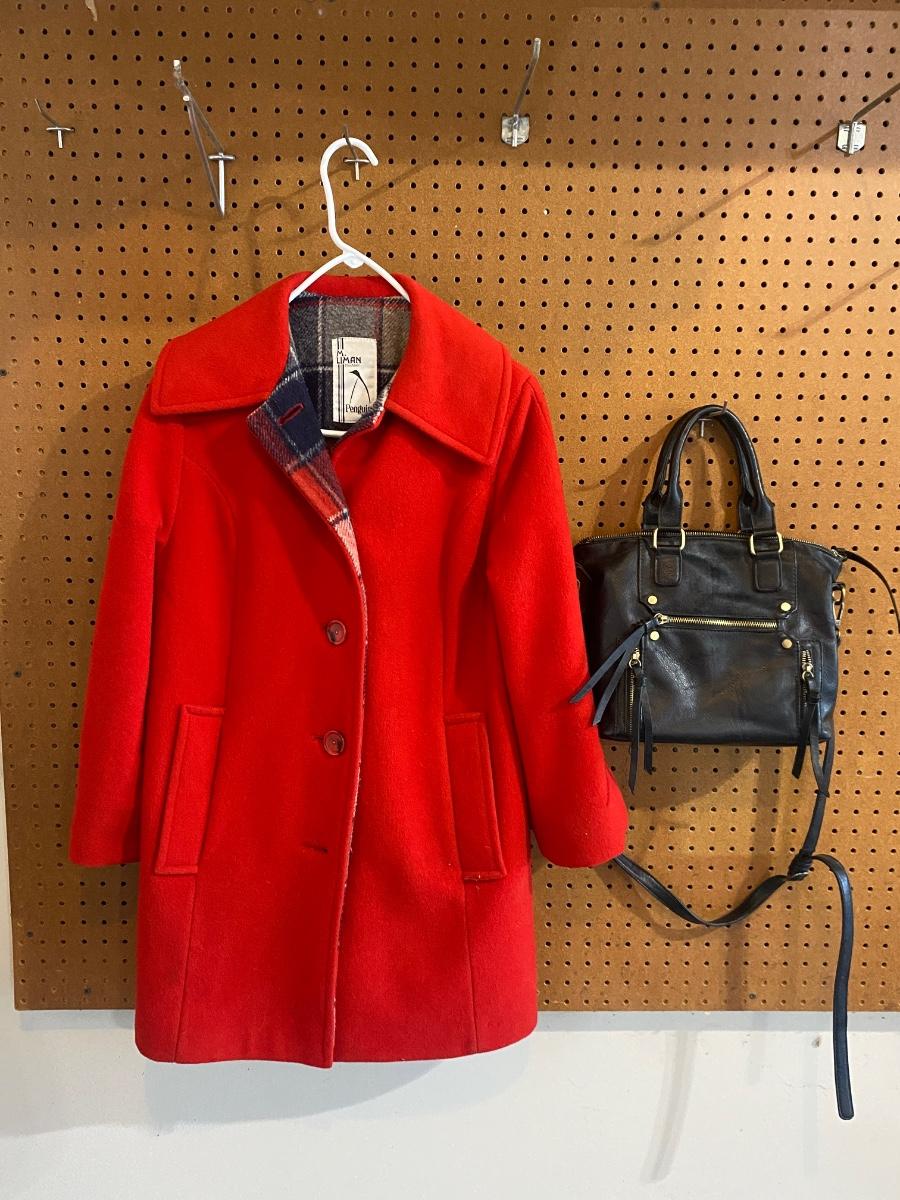 M. LIMAN COMPANY PENGUIN FASHIONS OVER COAT AND ANTIK KRAFT PURSE
