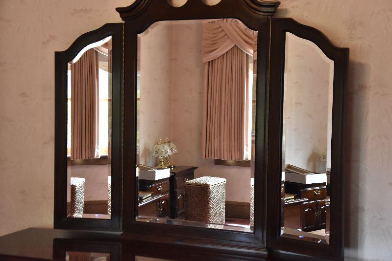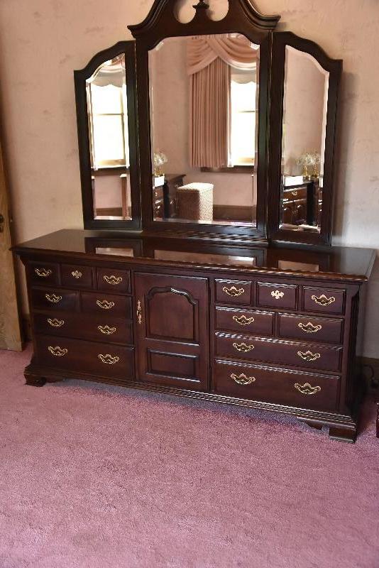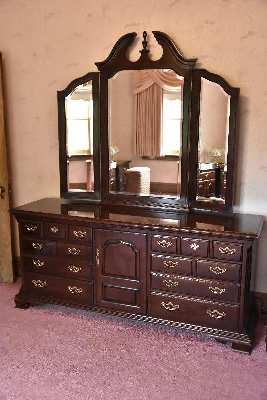 M Lot 15: Thomasville Collectors Cherry 72" Triple Door Dresser with Mirror