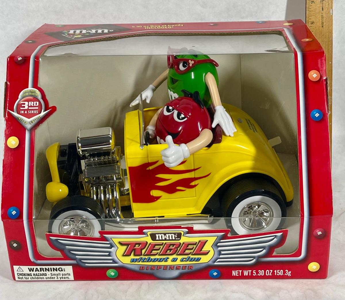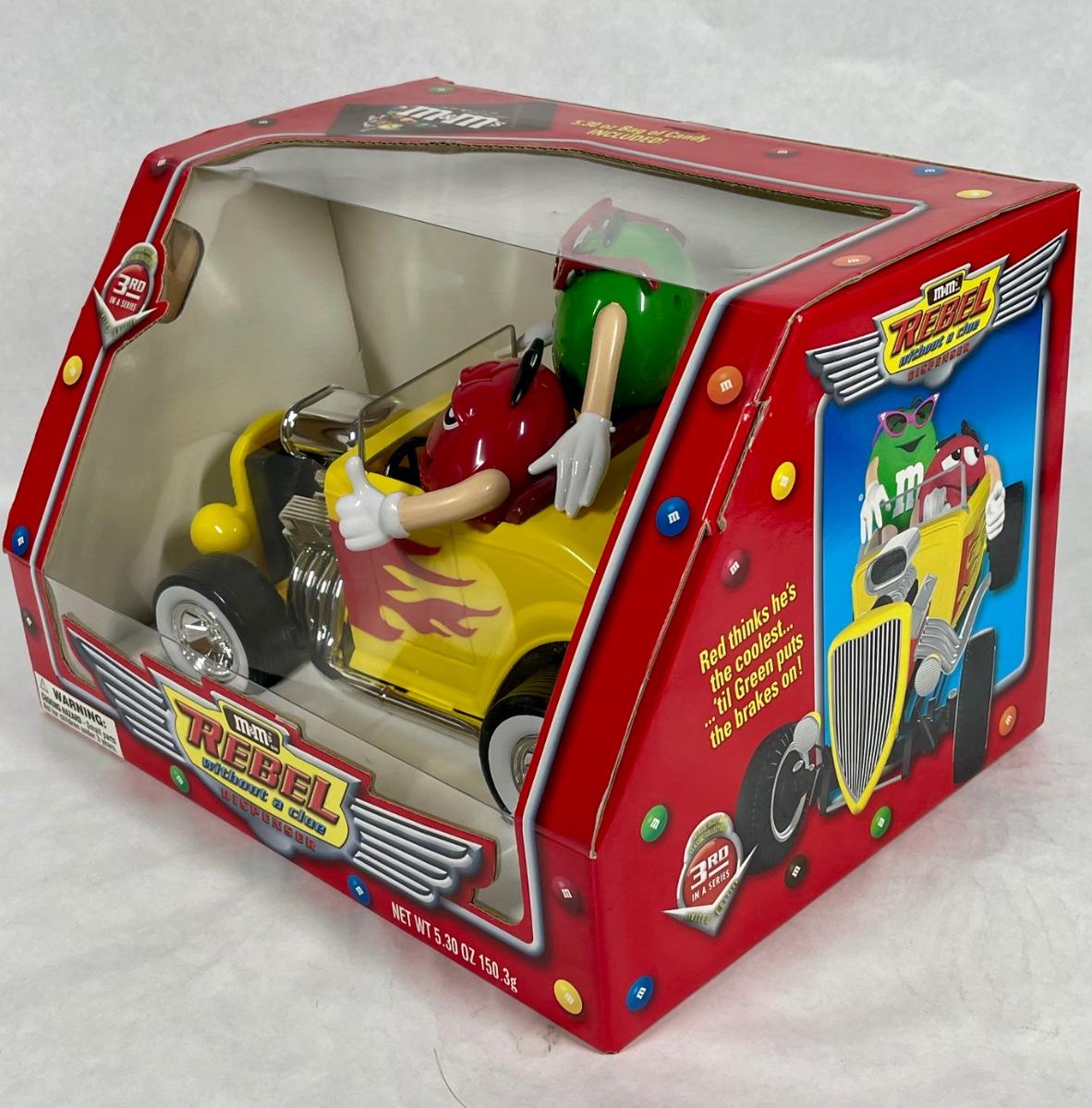 M & M Rebel Without a Cause Dispenser Roadster with Red and Green M&M's NIB