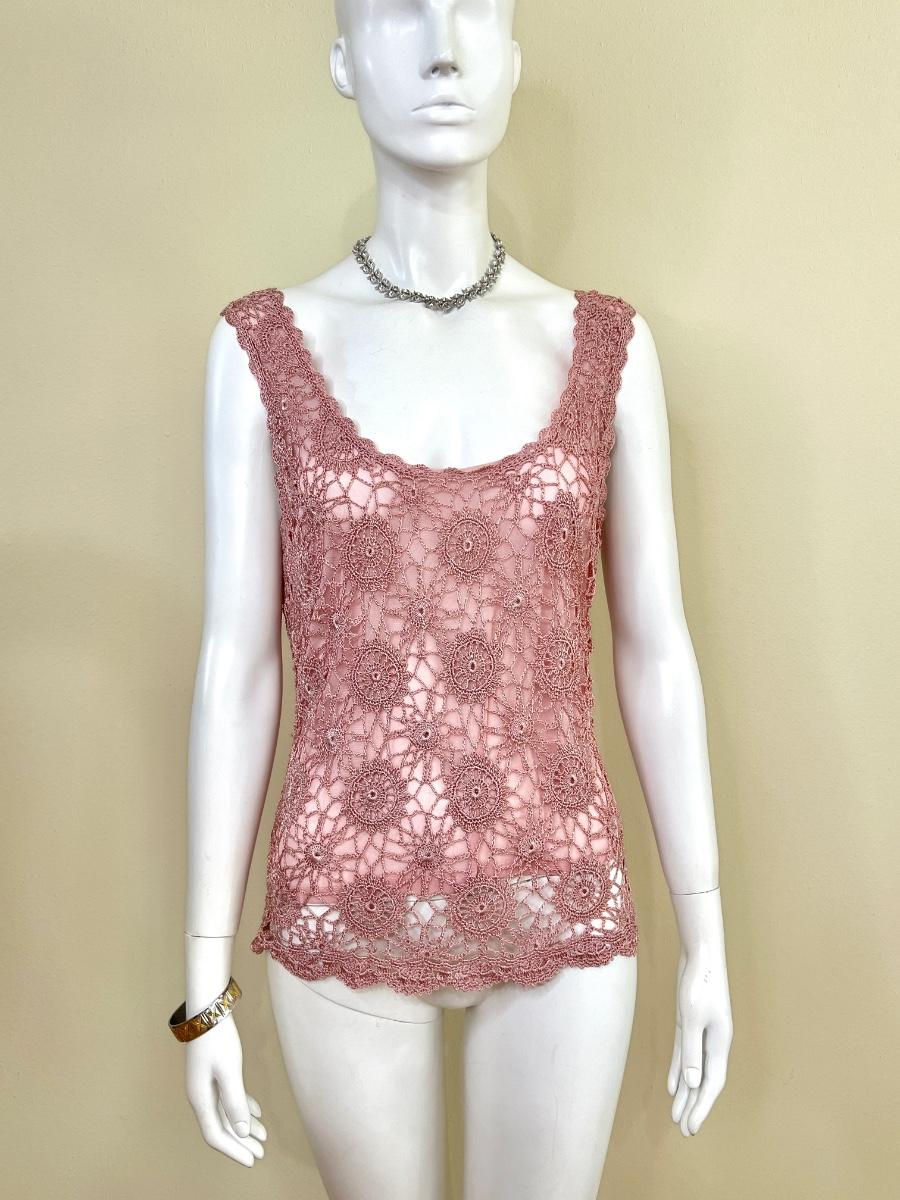 M. NICOLE ~ Two Piece ~ Size L Croceted Tank & Size XL Coverlet