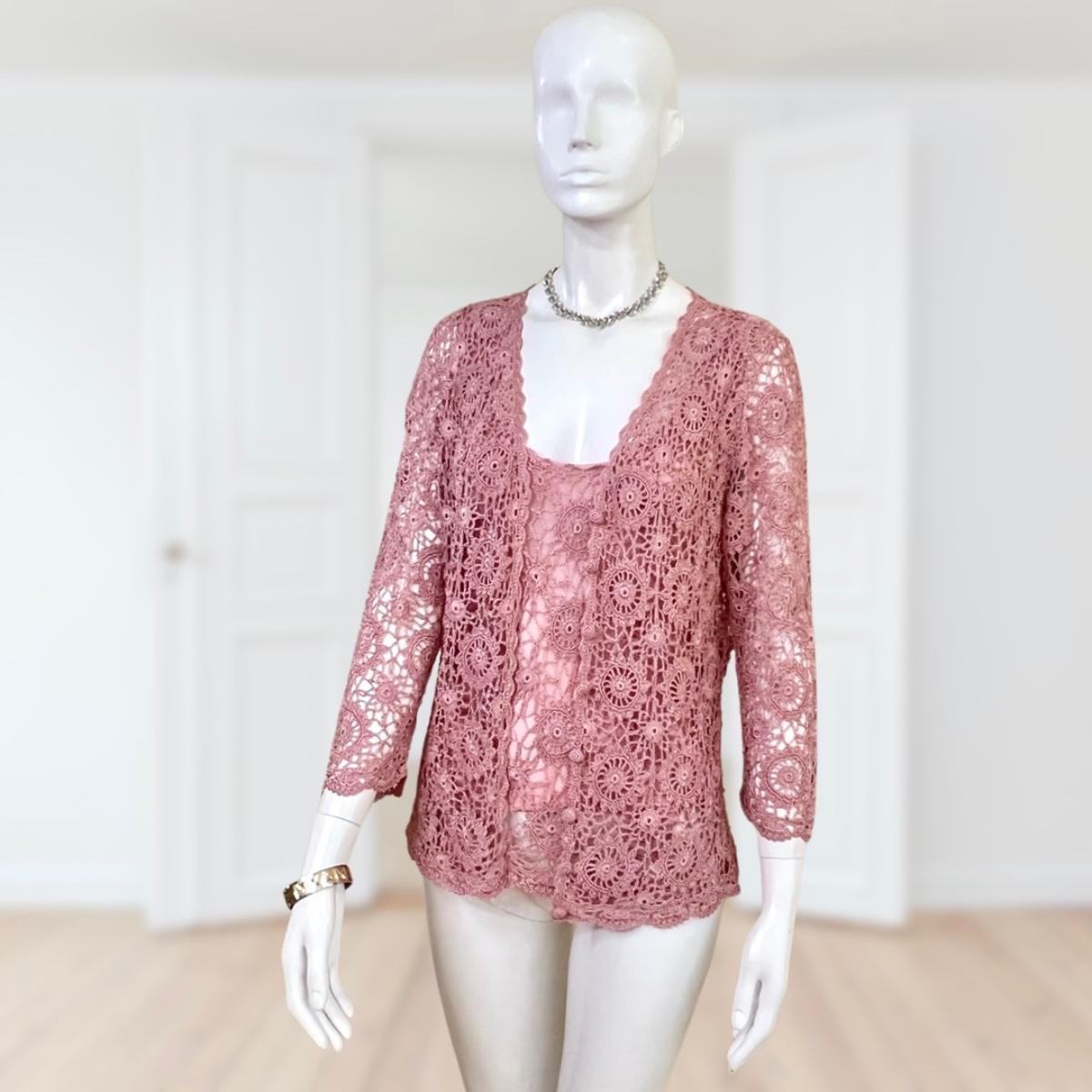 Two piece crochet sweater set. Sweater has 3/4 sleeves.