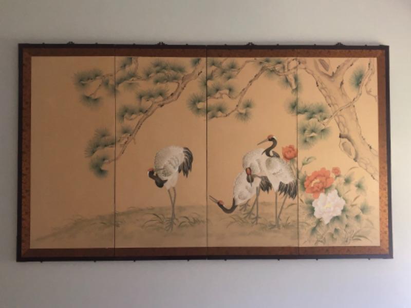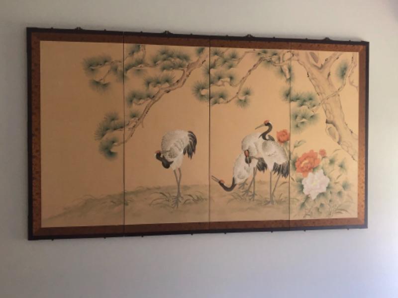Handpainted paneled wall hanging is a beautiful statement piece. 34 × 60
