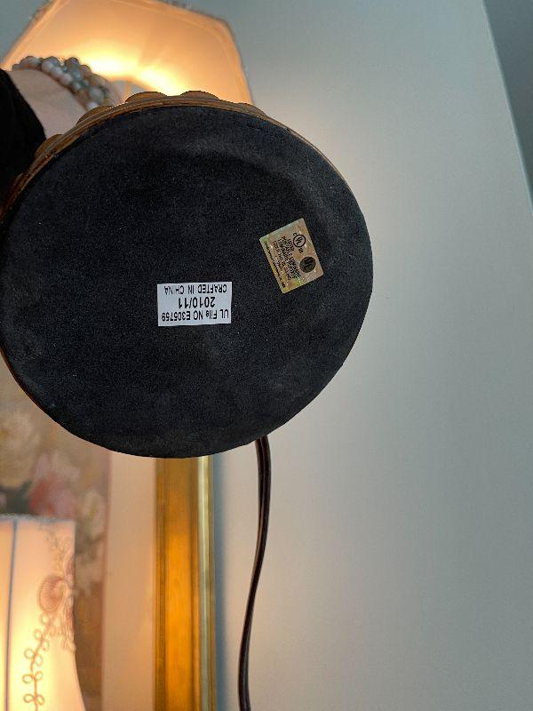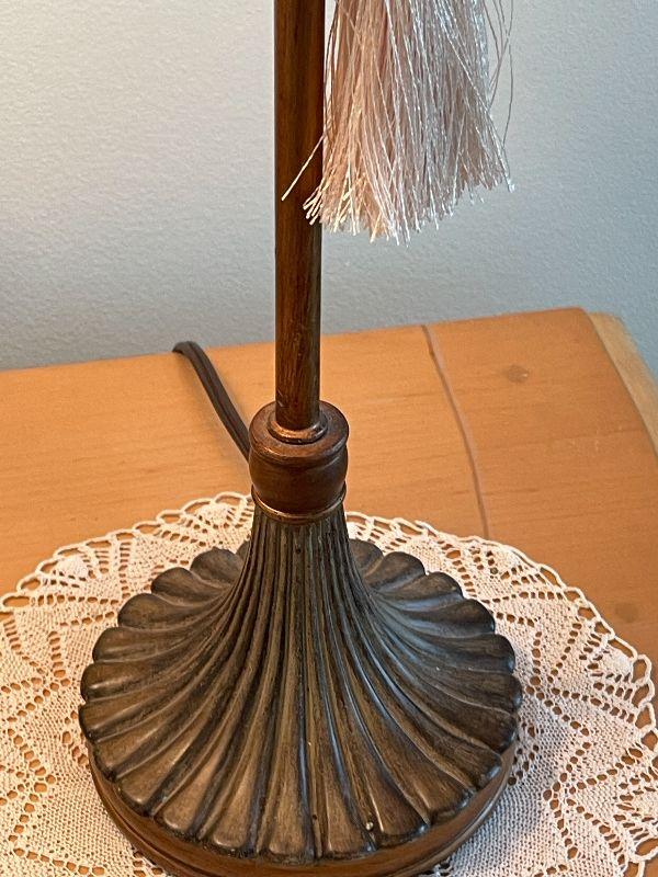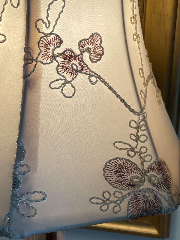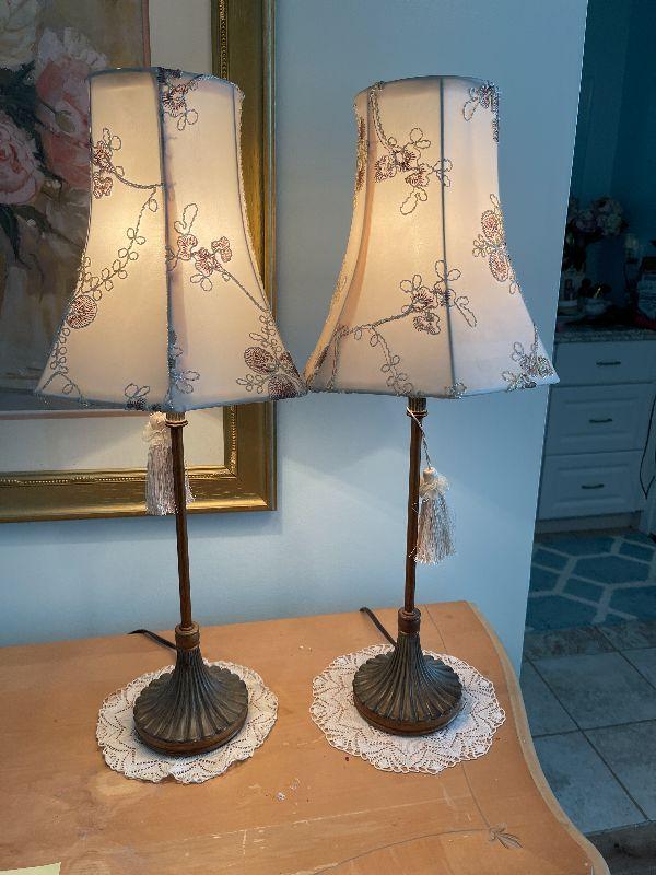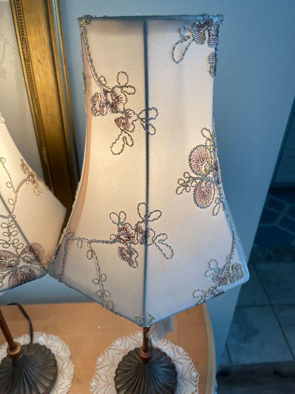 M1: Pair of Metal Table Lamps with Embroidered Shades