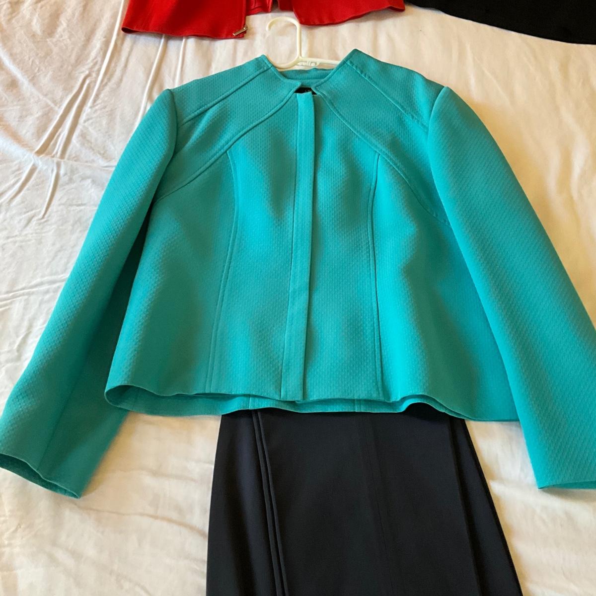 Red Ellen Tracy jacket size 14 with matching black pants size 14