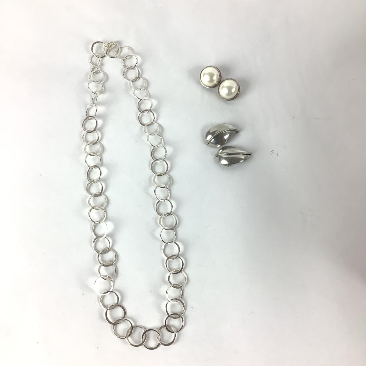 M1061 Artisan Hammered Silver Link Necklace with Silver Clip Earrings