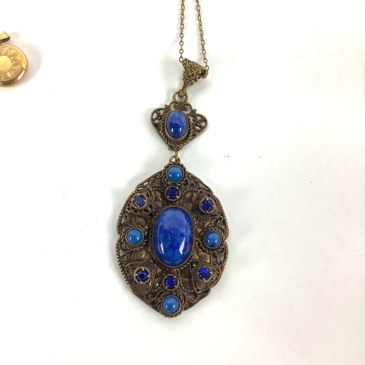 M1064 Vintage Blue Stone Pendant Necklace with Children's Pendant /Bracelet