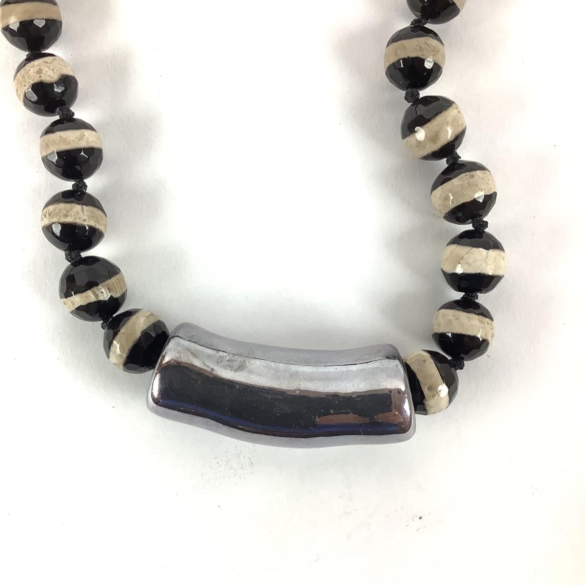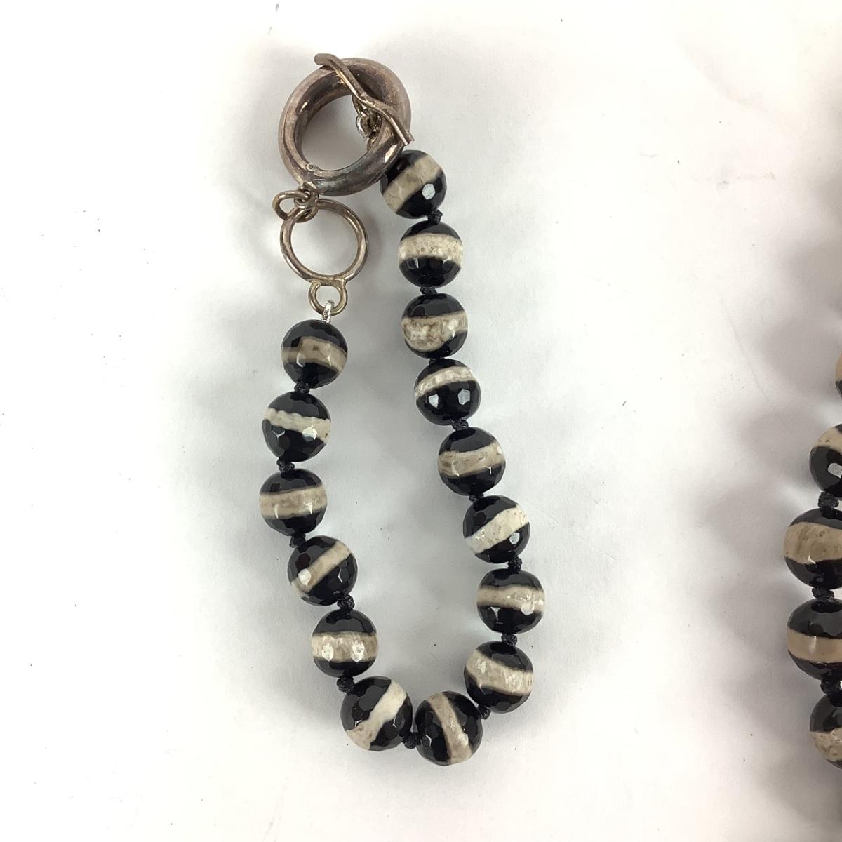 M1067 Vintage Black & White Glass Faceted Beaded Necklace with Matching Bracelet