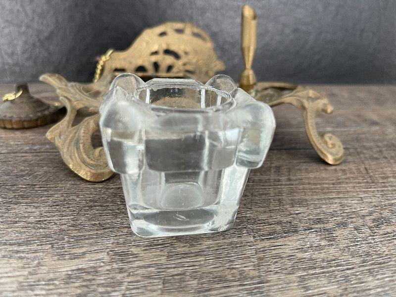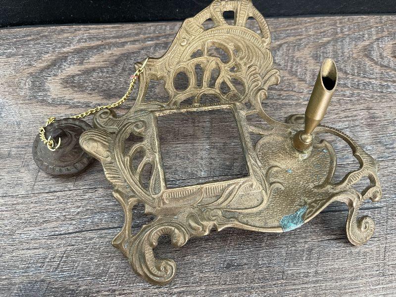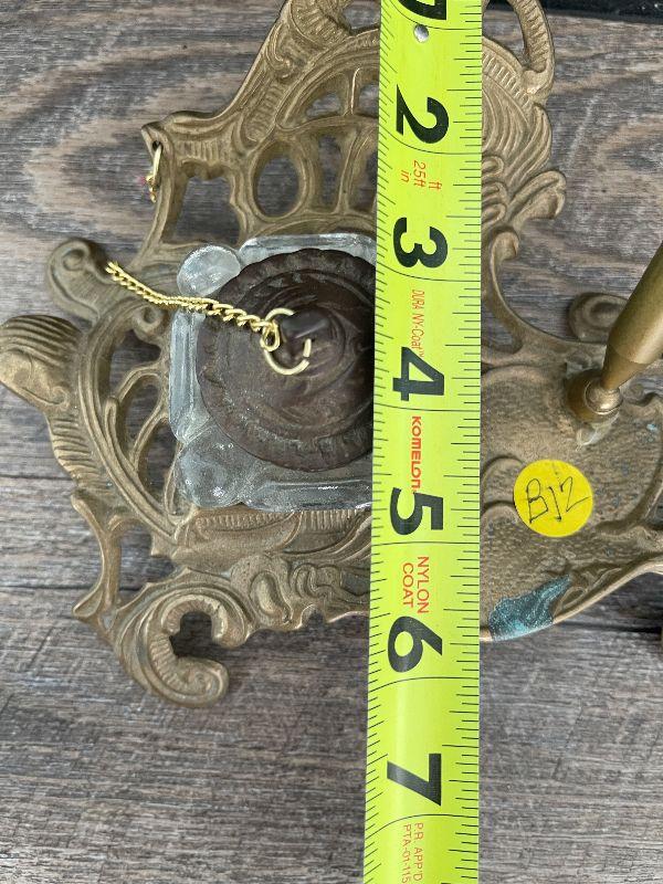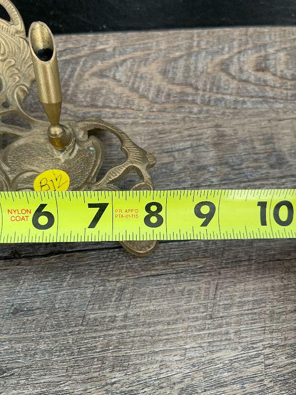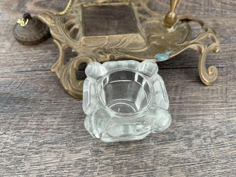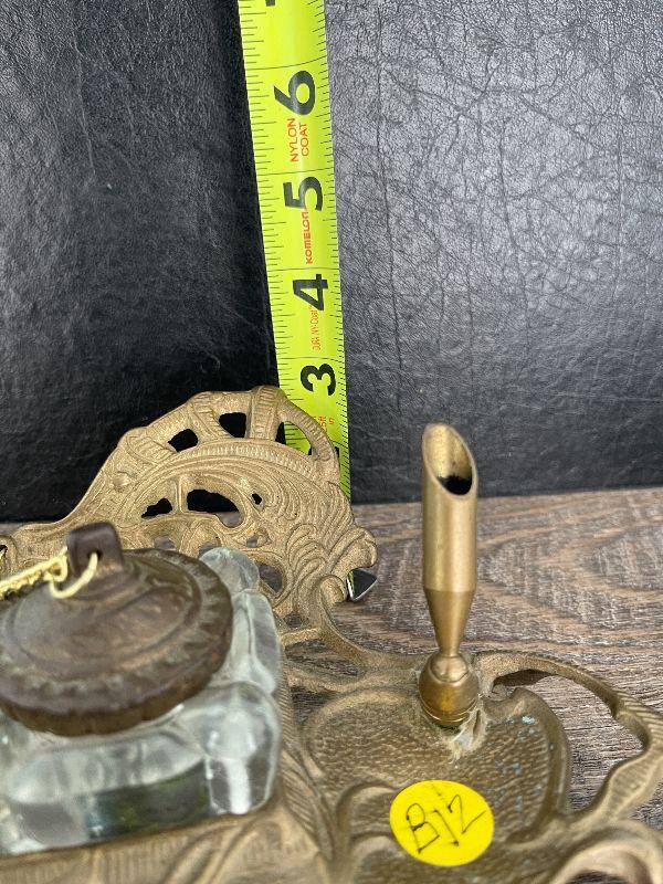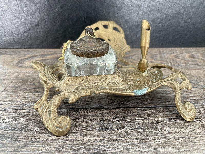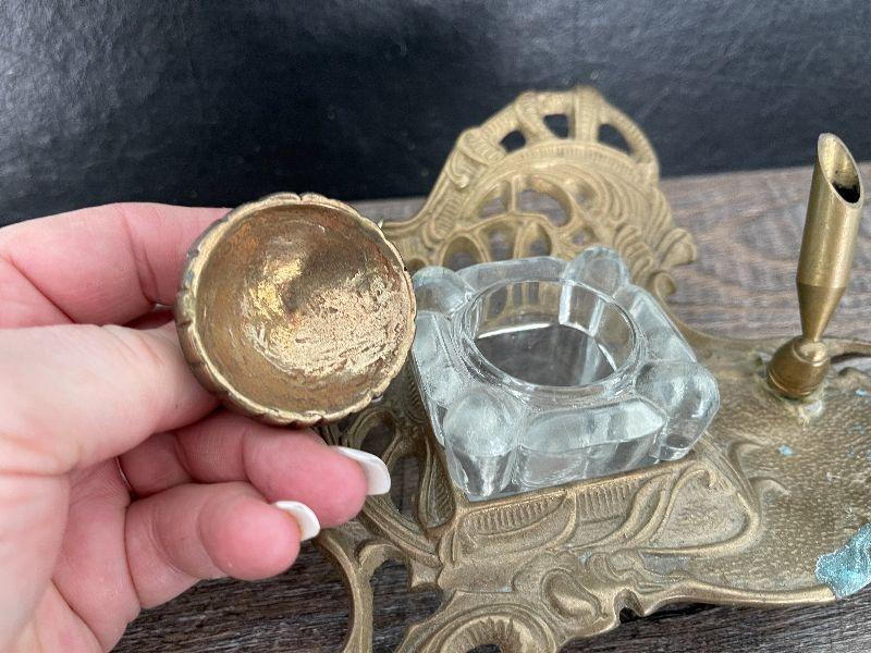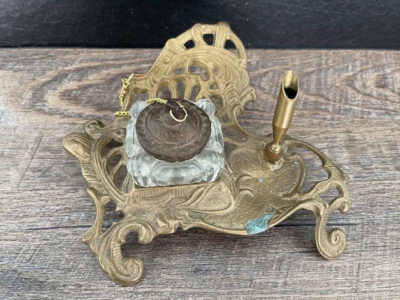 M12: Vintage Teleflora Brass Inkwell and Pen Desk Set