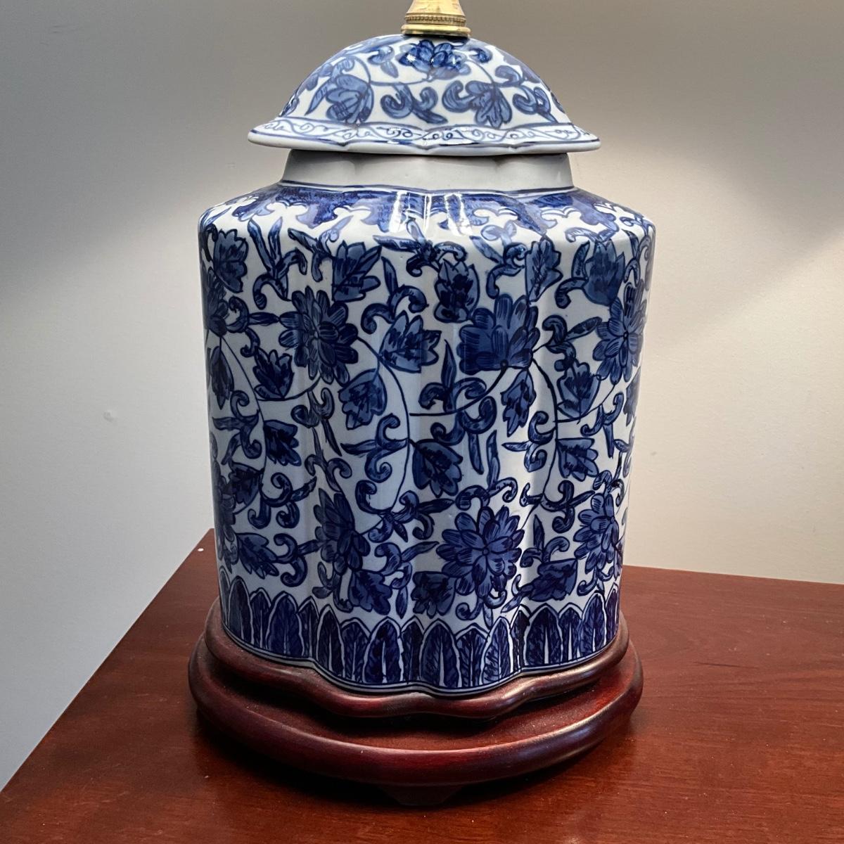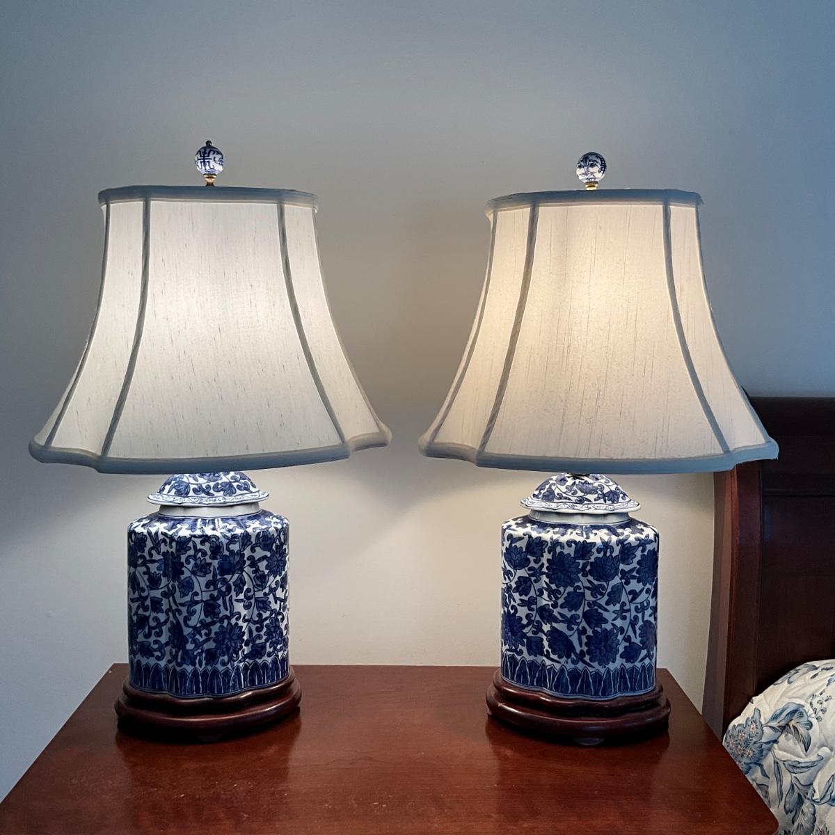M1215 Pair of Tea Caddy Pottery Lamps with Lamp Shades