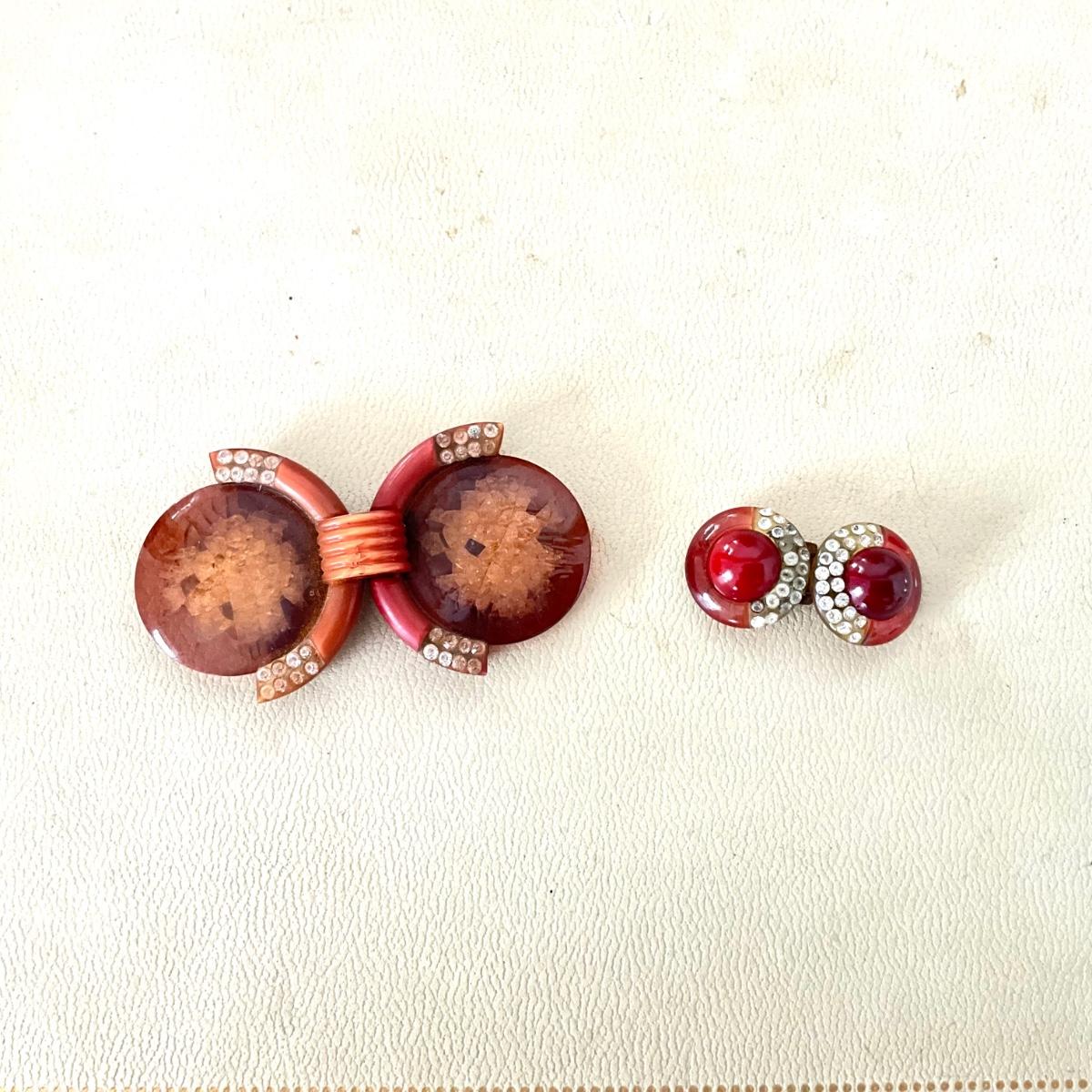 M1274 Pair of Antique Bakelite Rhinestone Belt Buckles