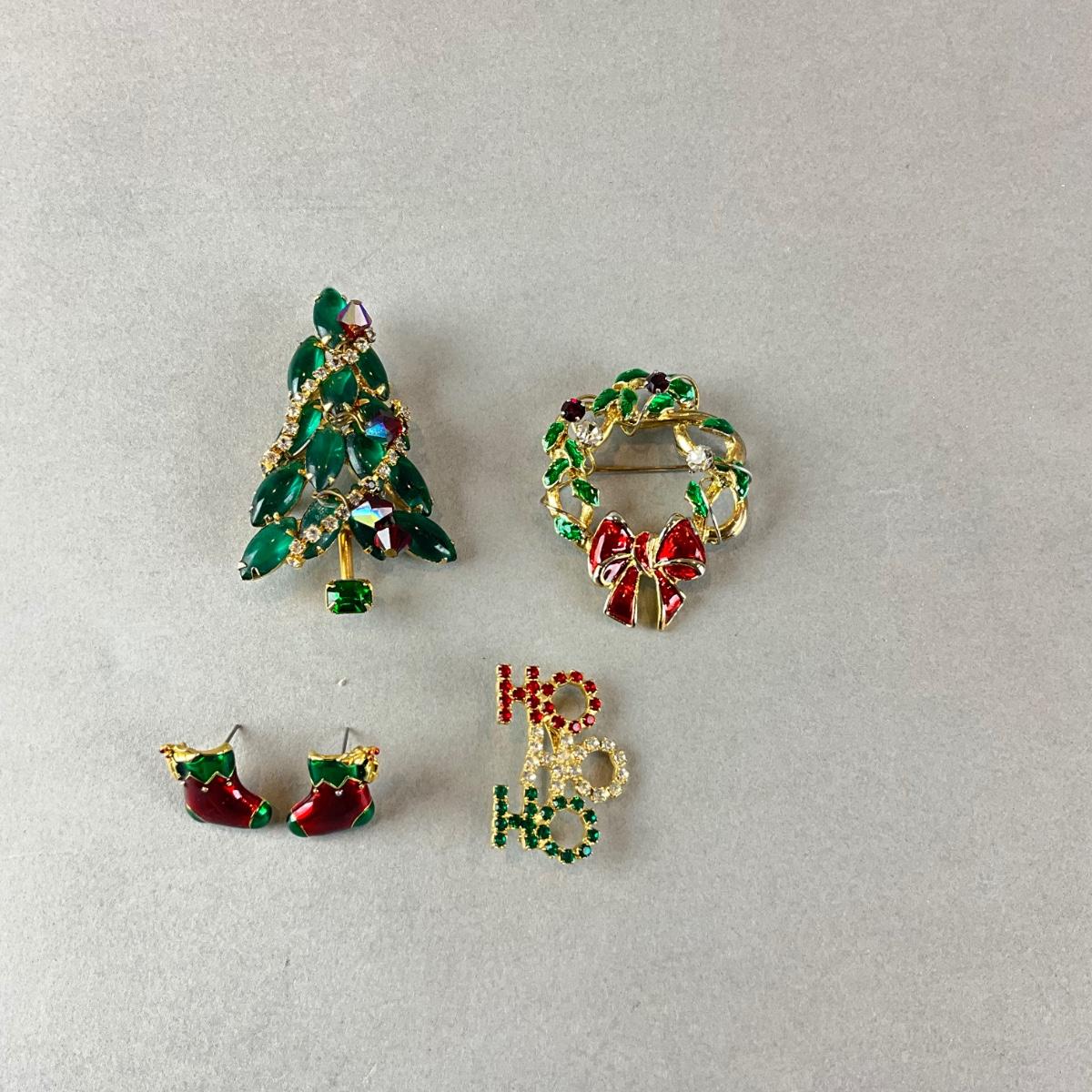 Very good condition with 3 pins and pair of clip on xmas stocking earrings
