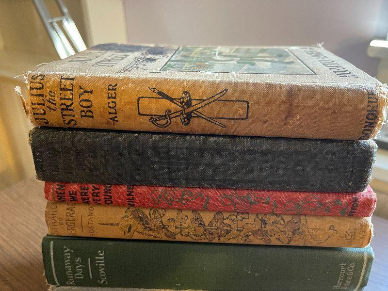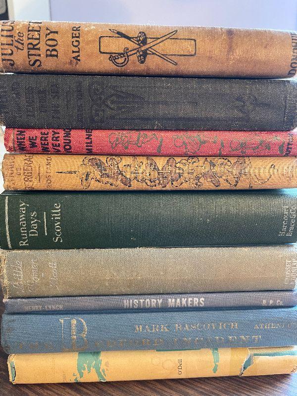 Nice collection of older books (no first editions). Please review all photos. First photo shows all that is in the lot, unless otherwhise noted. All items sold AS IS-WHERE IS. Please bring help for larger lots, and boxes or bags to remove your lots.
