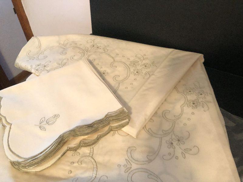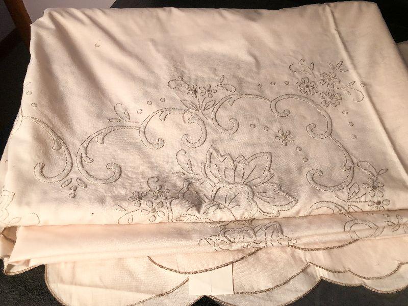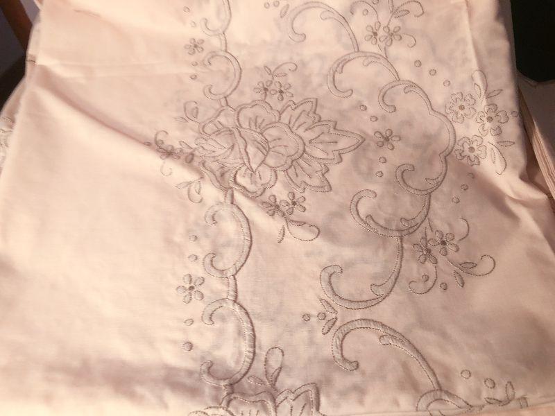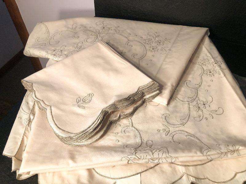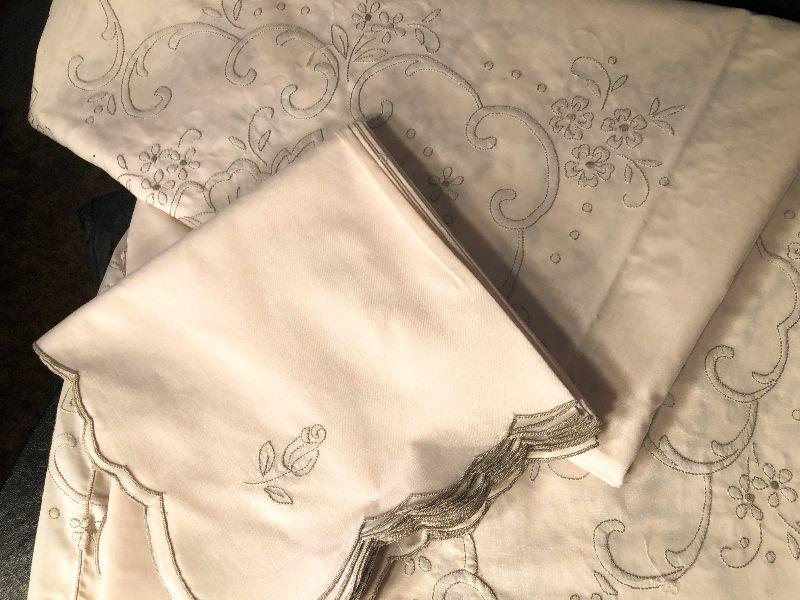 M15: Embroidered Table Cloth and Napkins-Vintage Unused