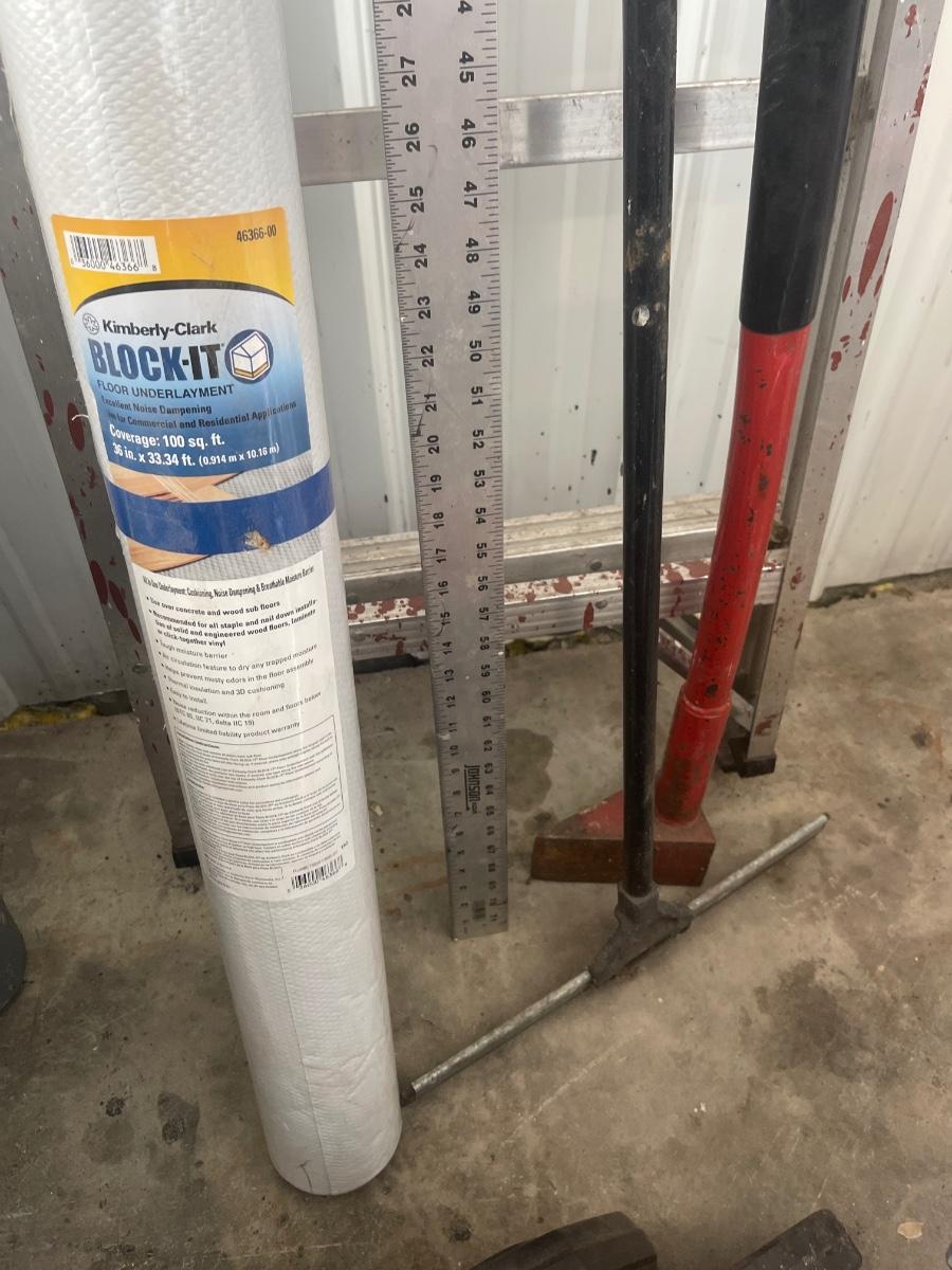 M1-heavy duty type one Keller ladder squeegee, floor underlayment, heavy duty axe, Measuring stick
