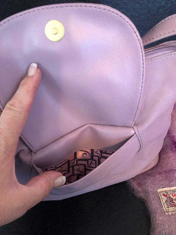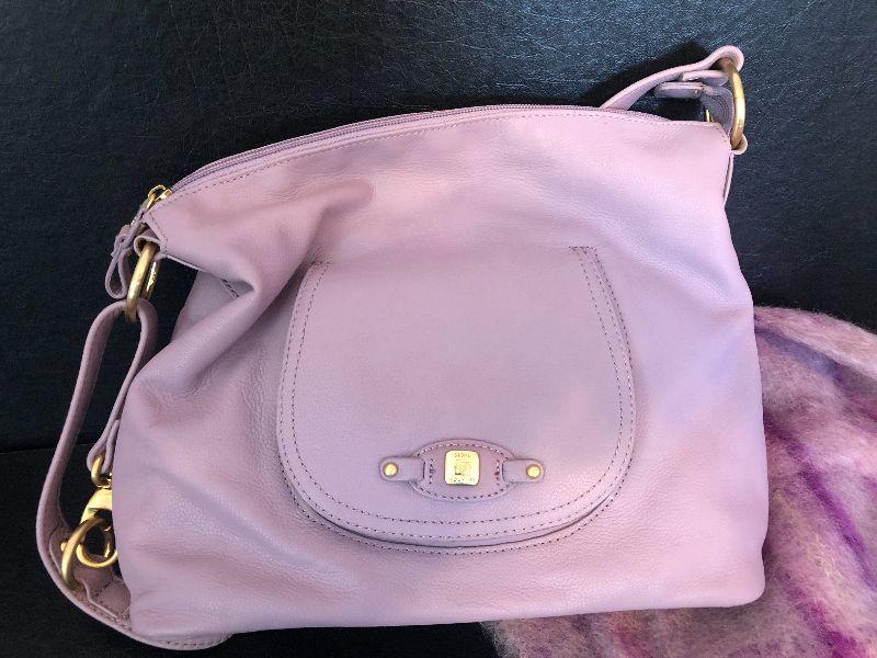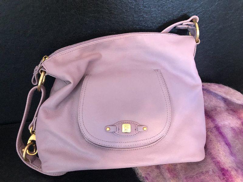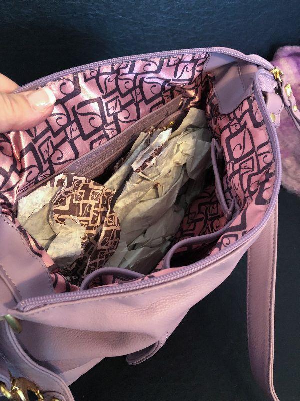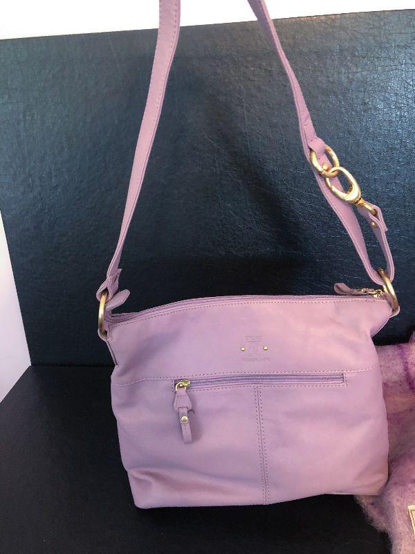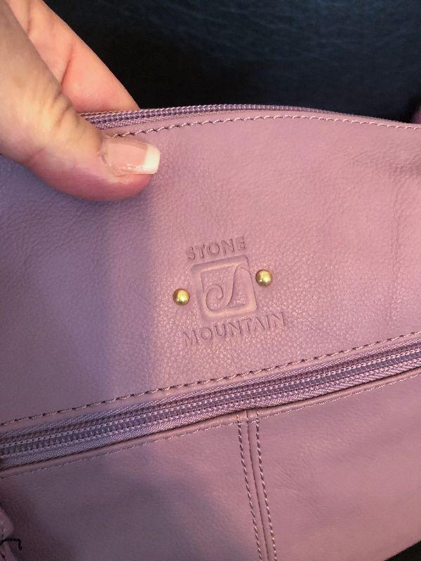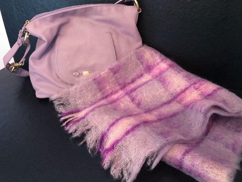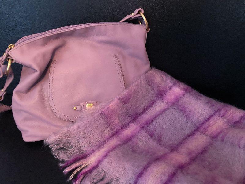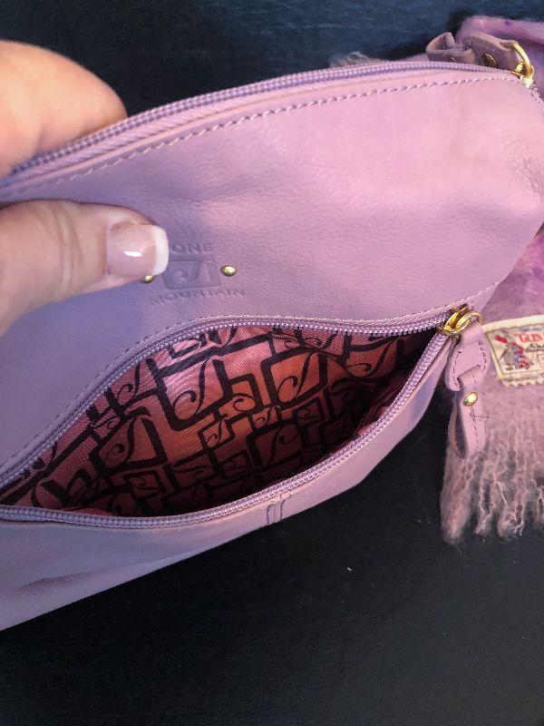 M2: Stone Mountain Purple Leather Handbag and Purple Plaid Scarf