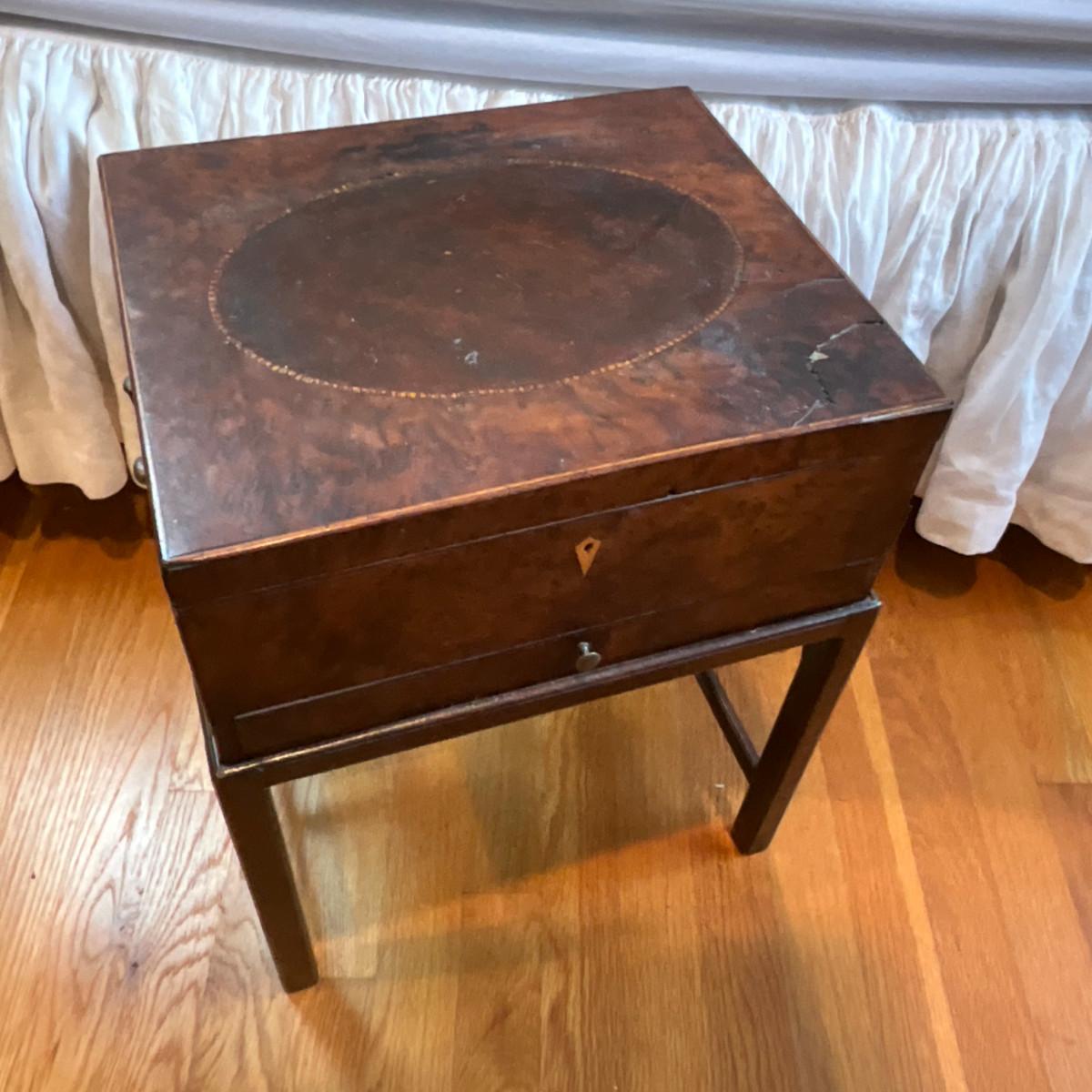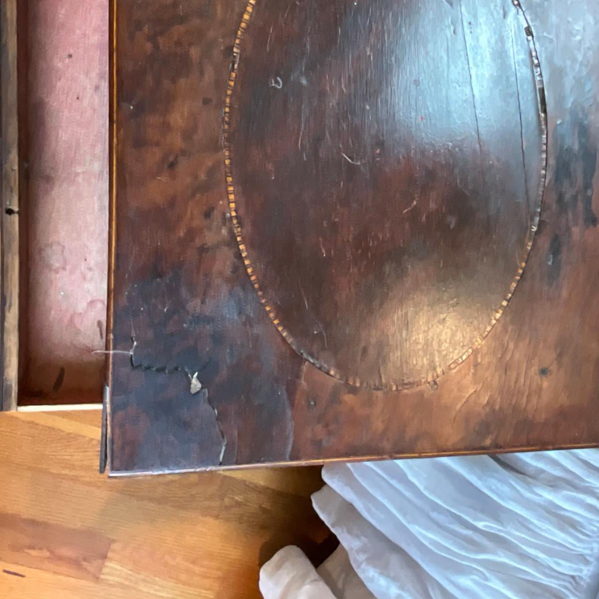 Made of mahogany wood, has veneer damage on top, refer to photos