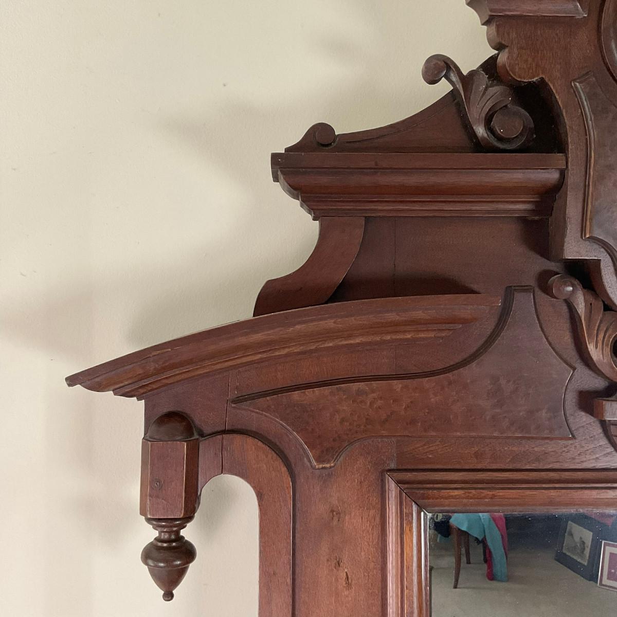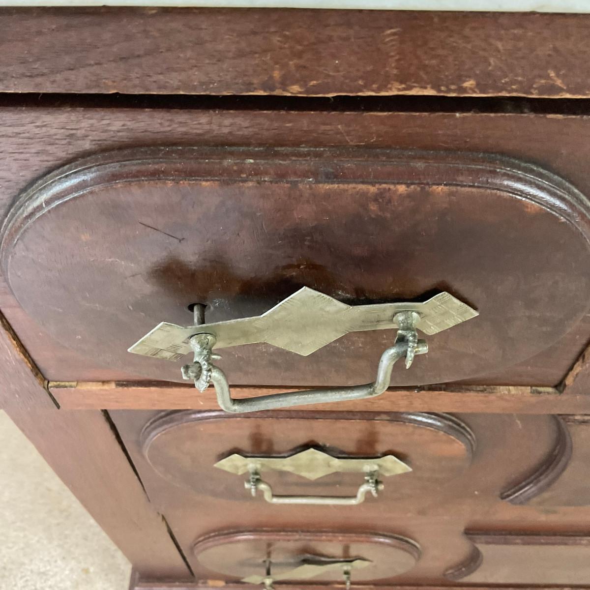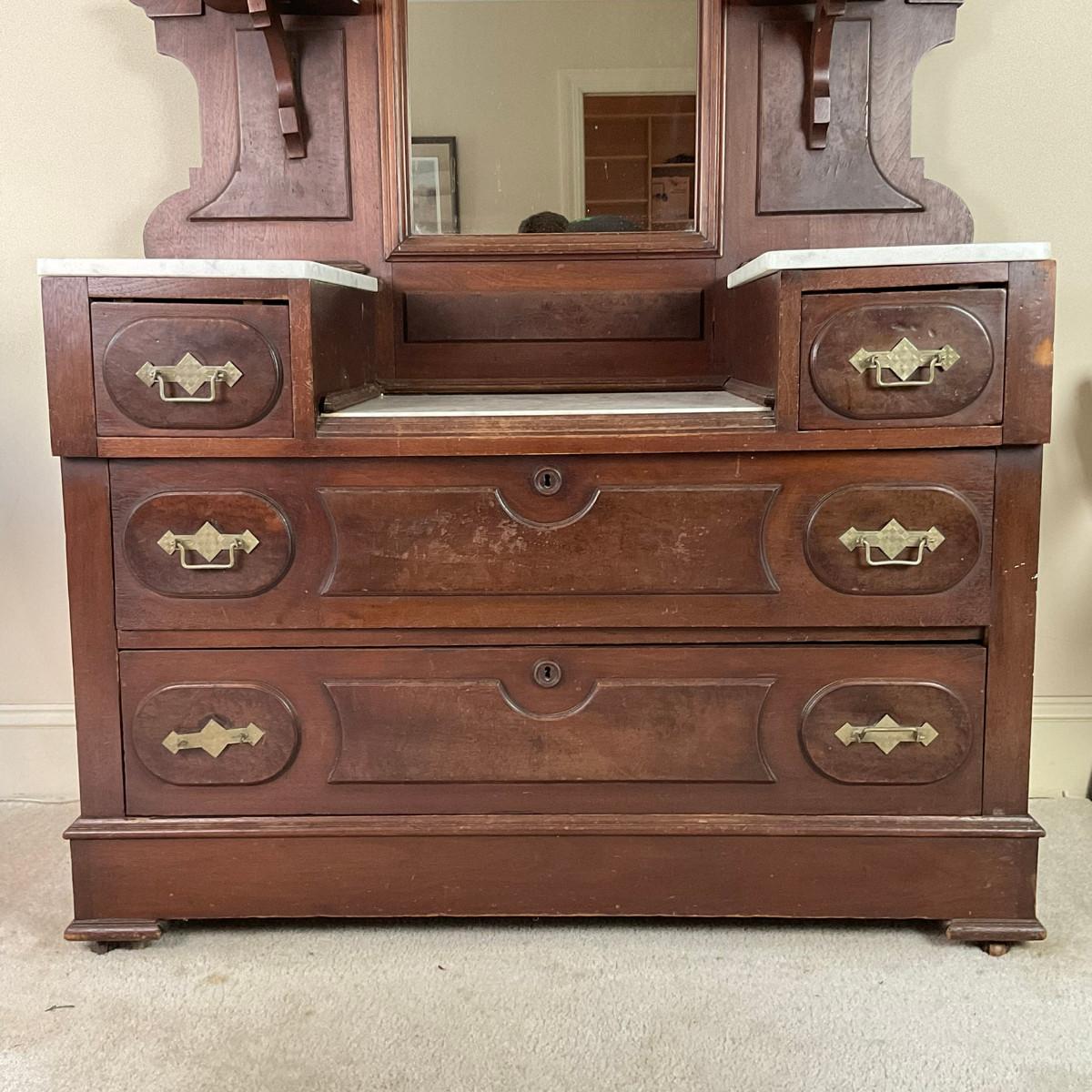M247 Antique Renaissance Revival Mahogany/Burled Walnut Marble Top Dresser