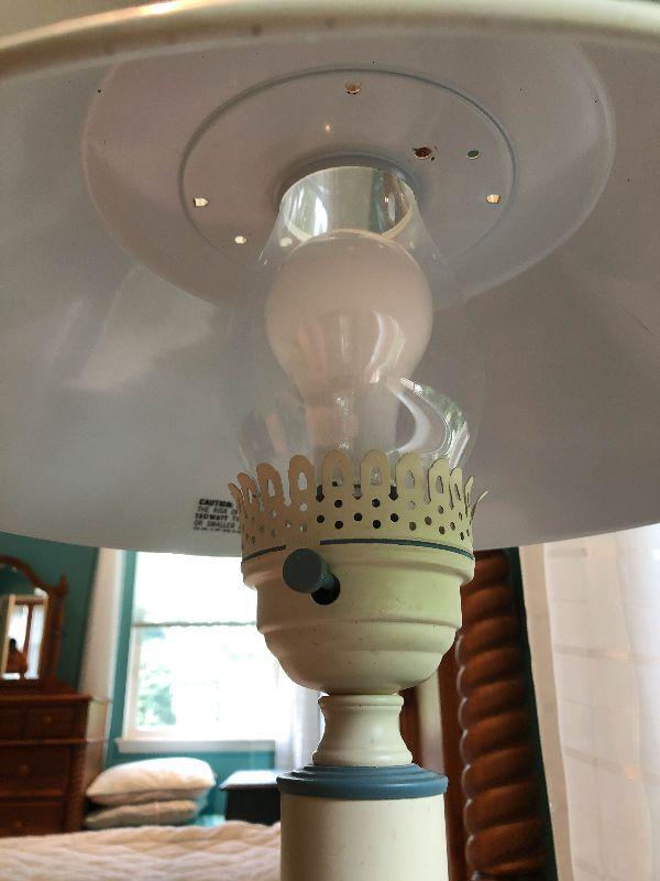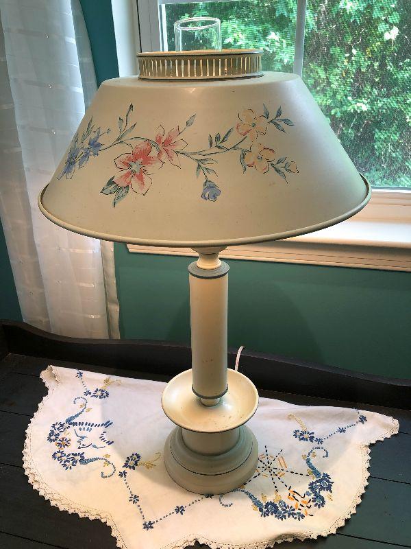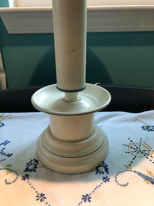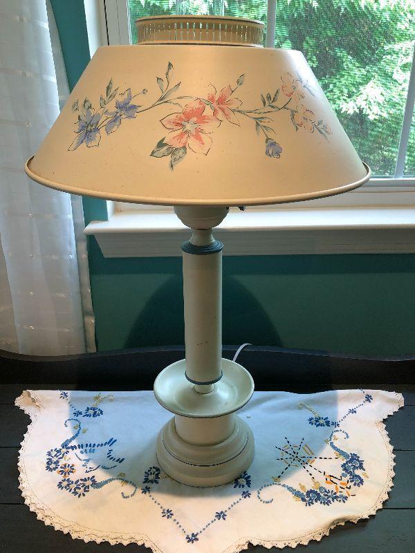 Nice metal lamp with metal shade. Please see pictures for contents of the lot, condition of the lot, and any measurements of the item. Thank you for looking and happy bidding!