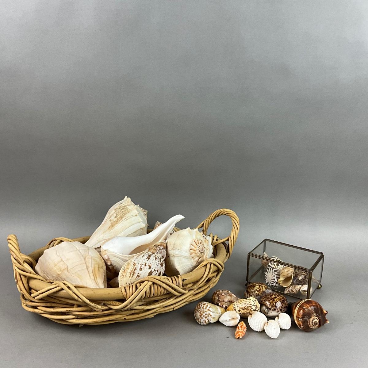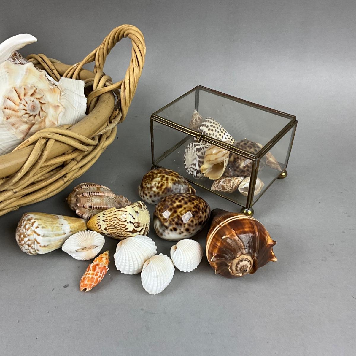 M436 Basket Of Shells With Glass Box