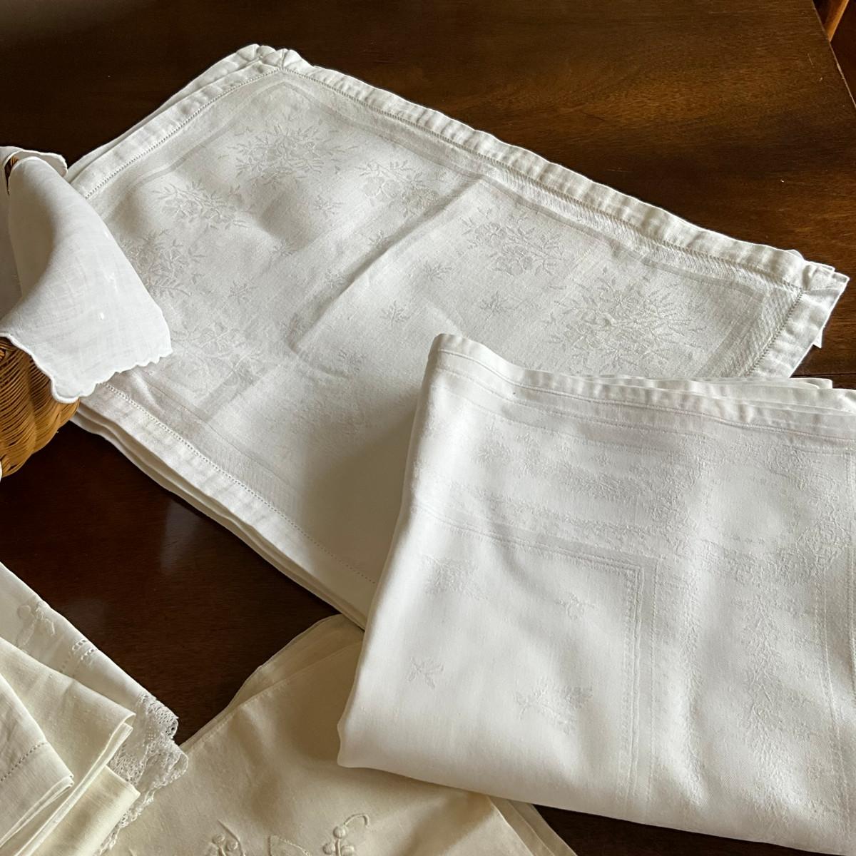 M446 Large Set Of Vintage Cotton & Linen Napkins And Place Mats