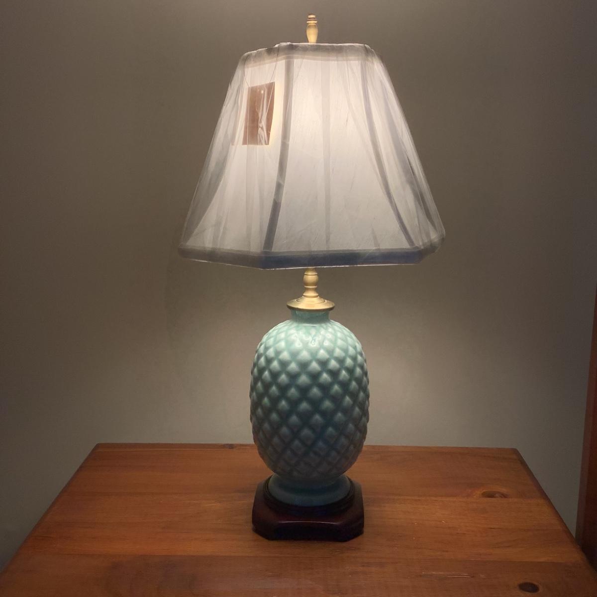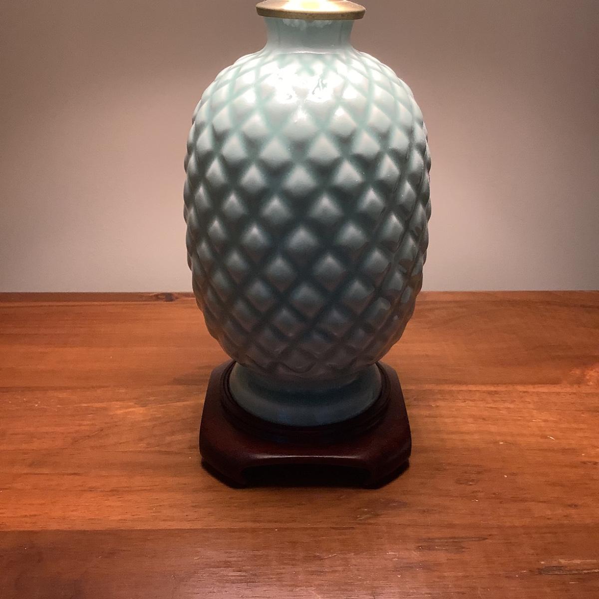 M535 Teal Blue Porcelain Pineapple Lamp