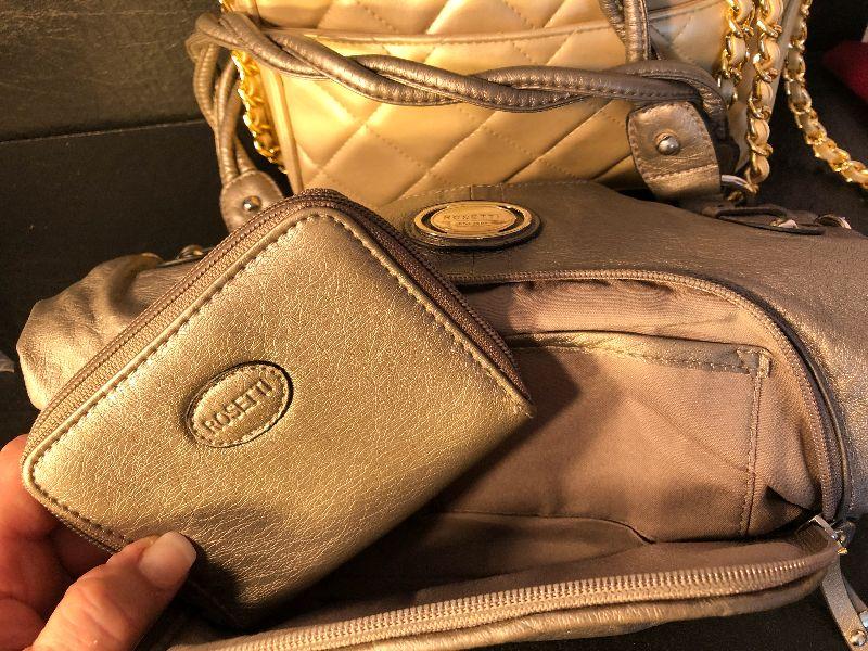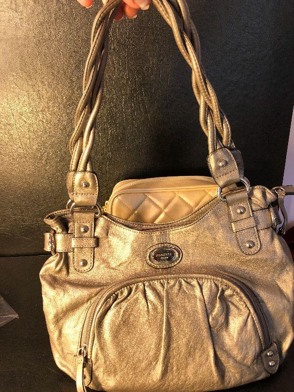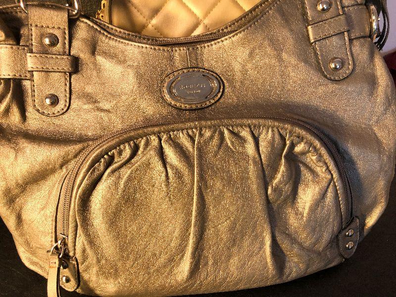 M57: Lot of Gold Handbags. Large Rosetti Bag has matching wallet.