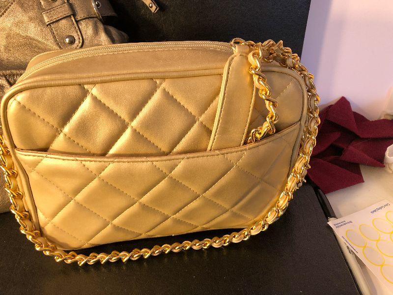 Quilted Giani Bernini bag has gold chain detail. Please see all pictures for exact contents of the lot, condition of the items, and if measurements if taken. Thank you for looking and have fun bidding.