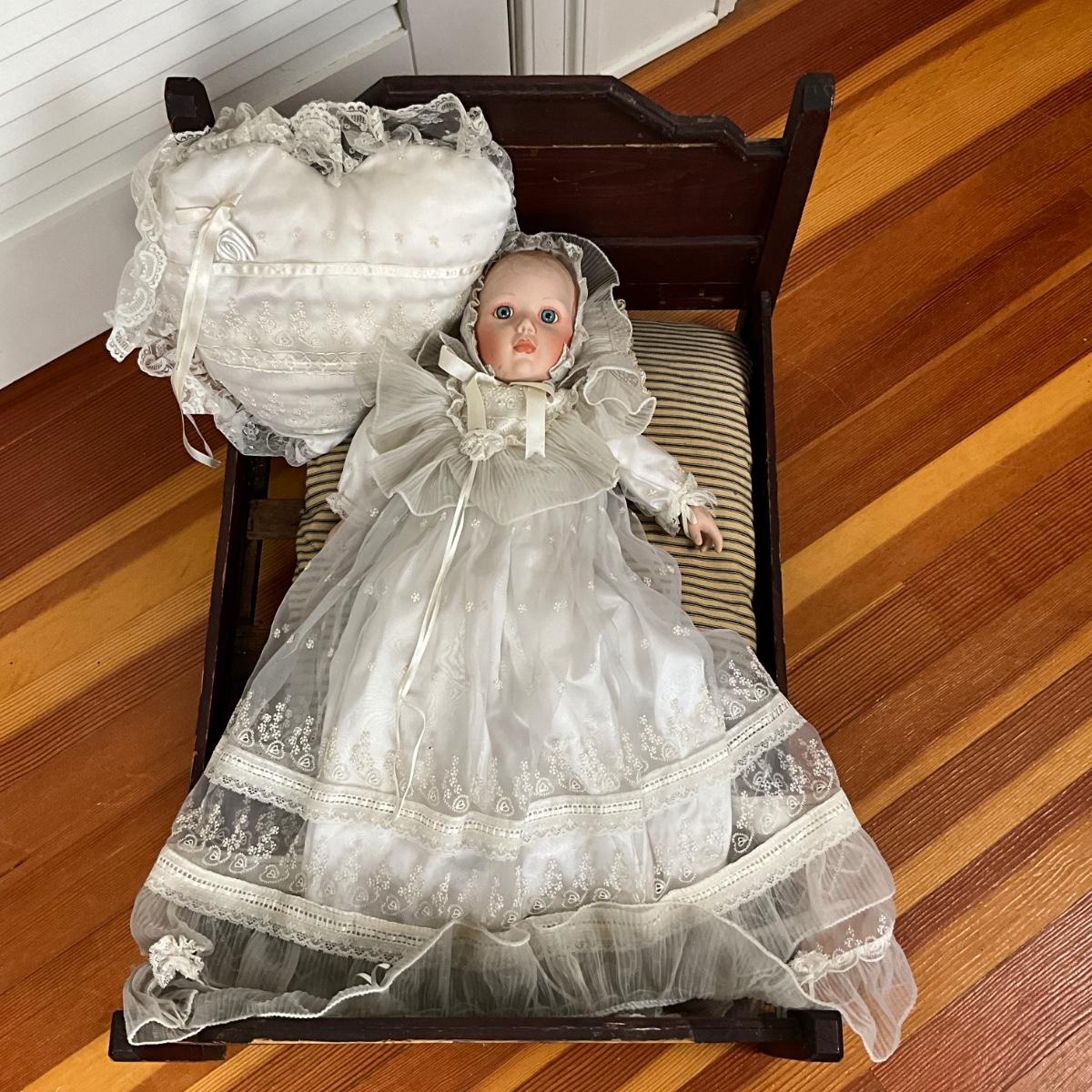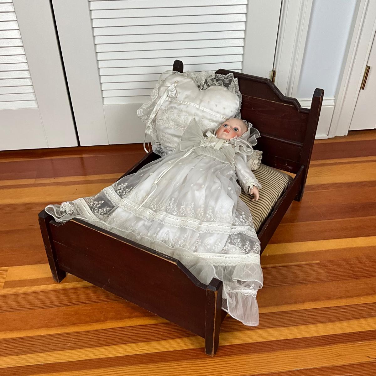 UBC660 Antique Doll Bed with The Danbury Mint Doll with Pillows