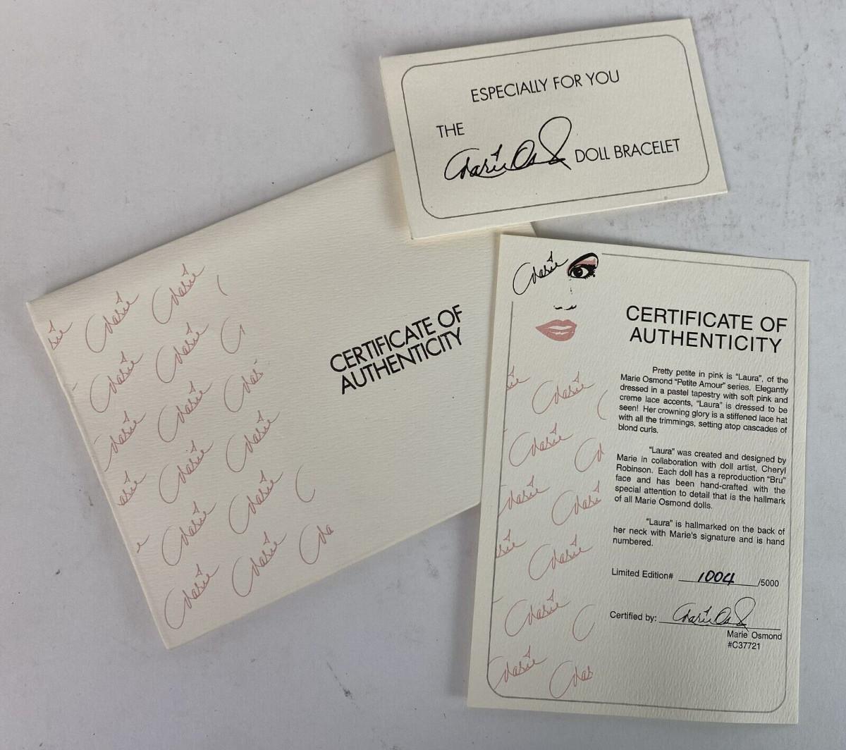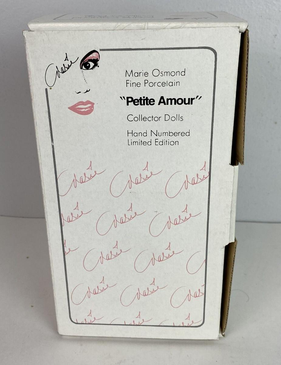 Marie Osmond Fine Porcelain "Petite Amour" Collector Doll...Hand numbered..Limited edition...Pretty petite in pink Laura...6"...Found new in box from a collector's estate...as shown...with COA...#1004/5000...Hallmarked on her neck…