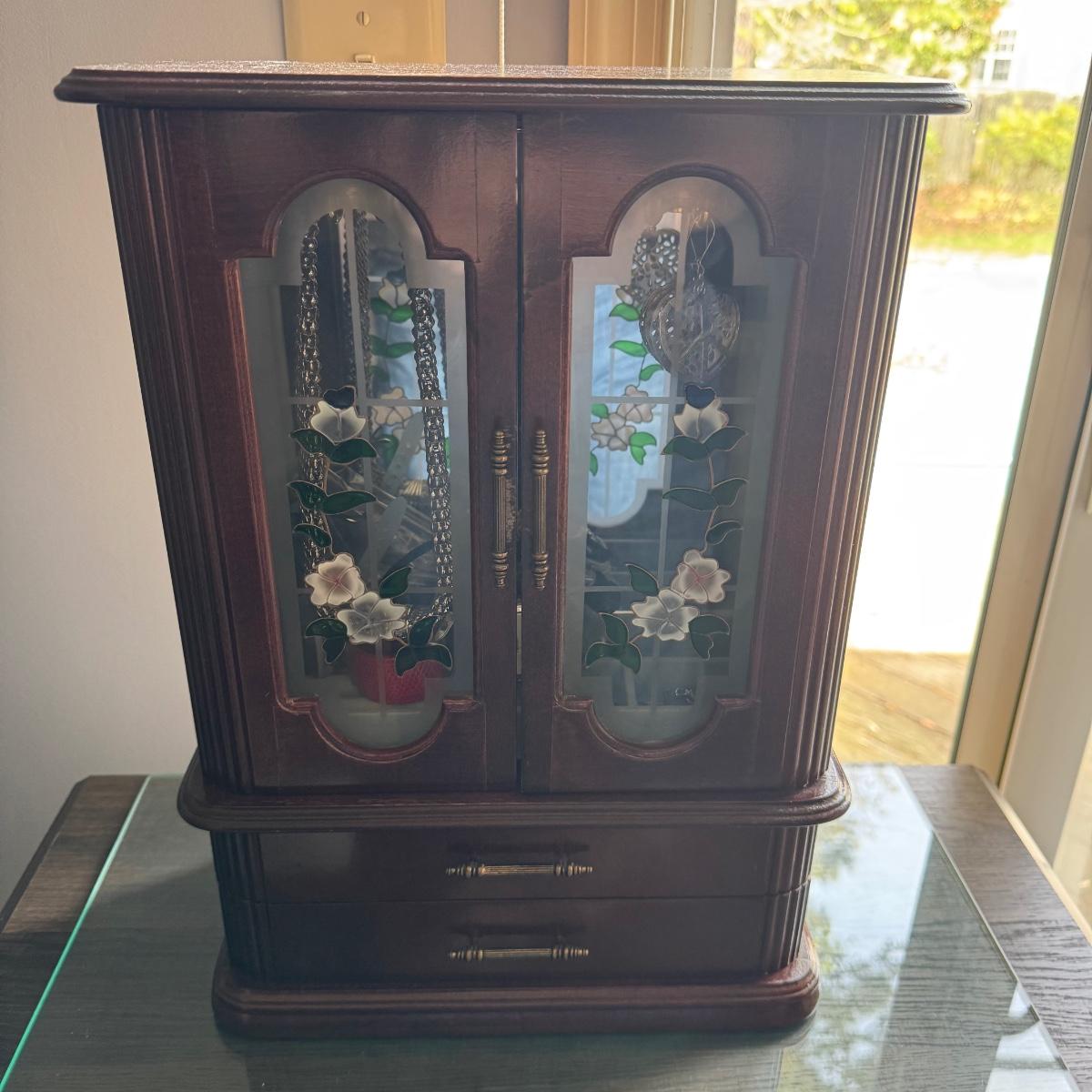 M8394 Stained Glass Doors Jeeelry Box with Costume Jewelry