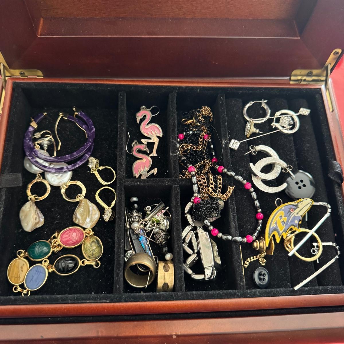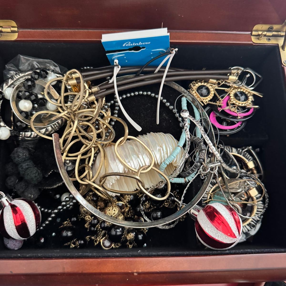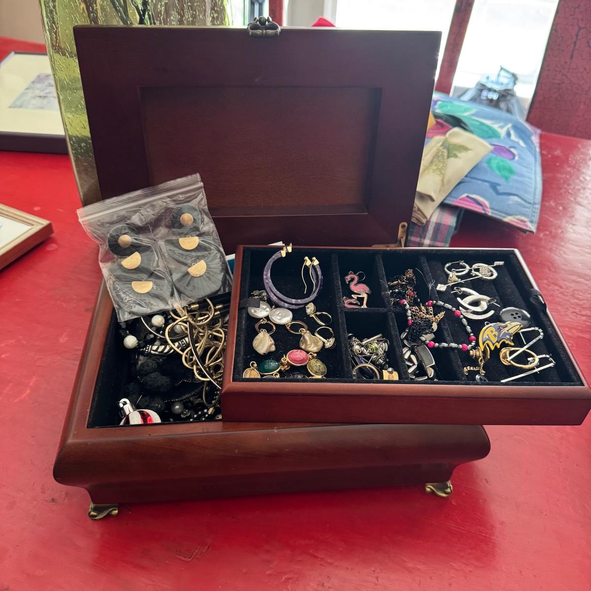 M8396 Mahogany Jewelry Box with Costume Jewelry