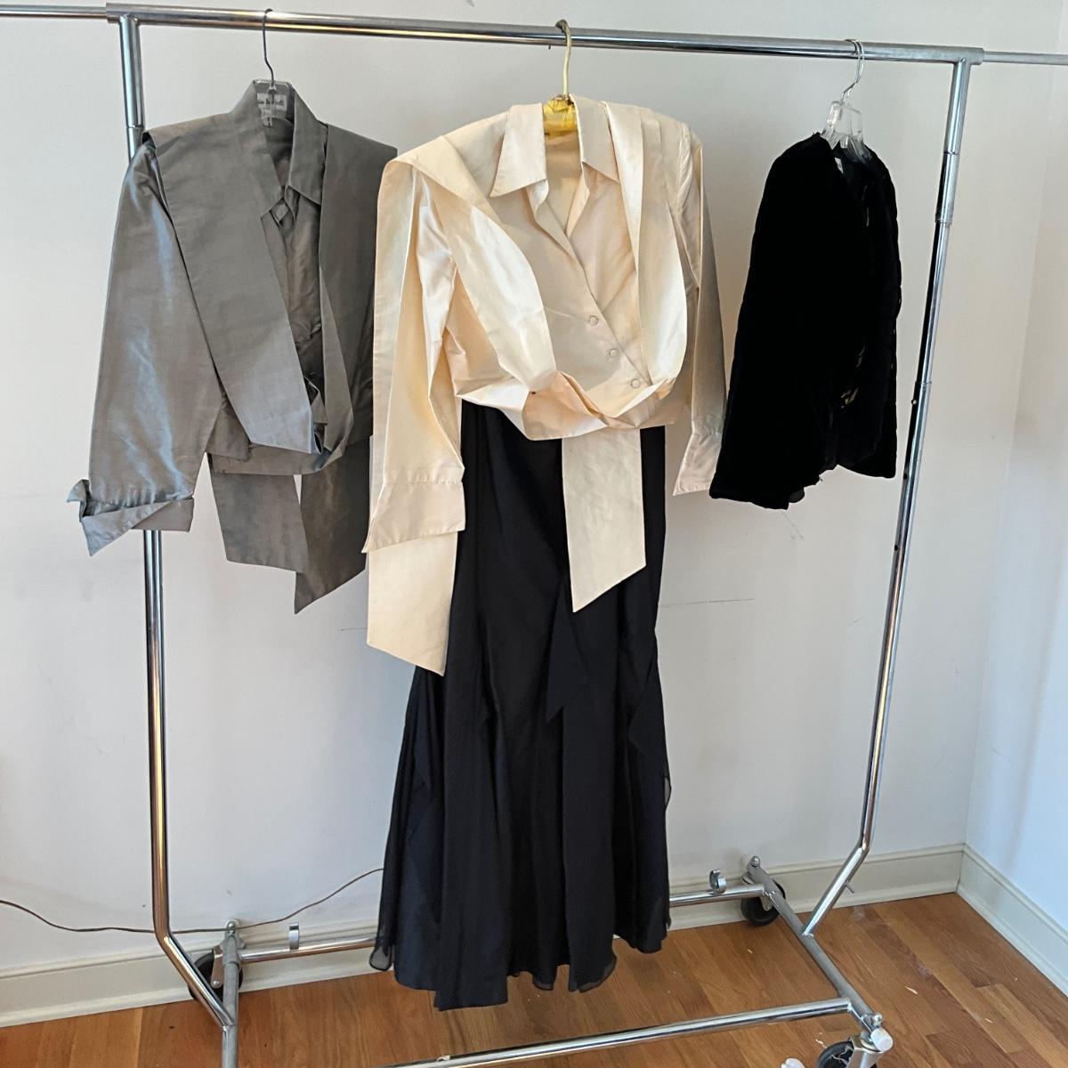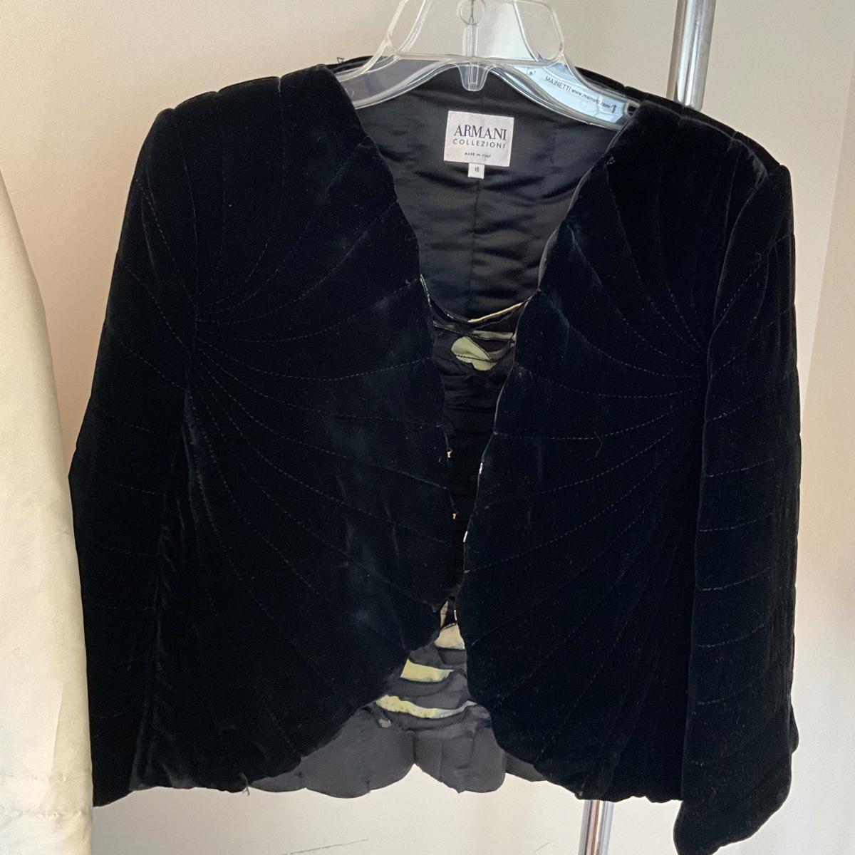 M866 Vintage Marisa Baratelli Tie Front Top, Armani Jacket, Black Skirt