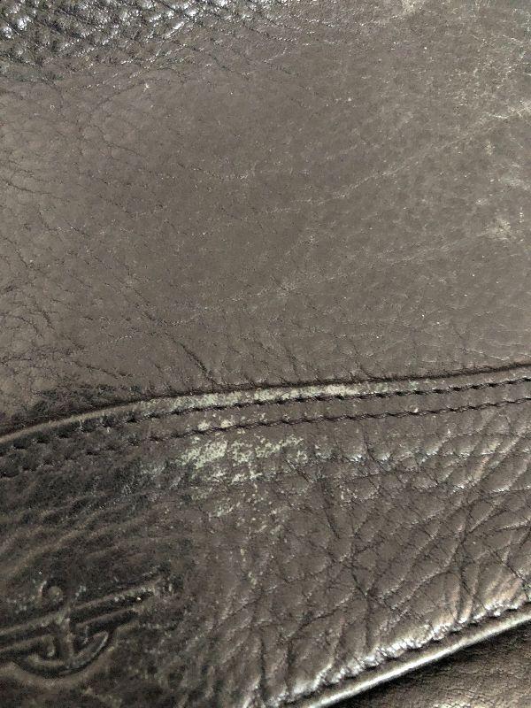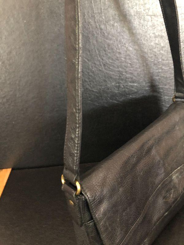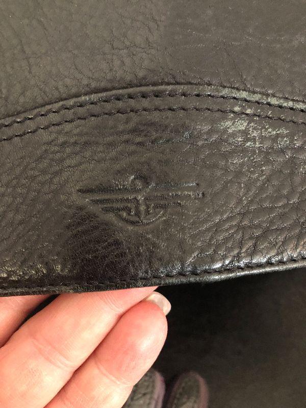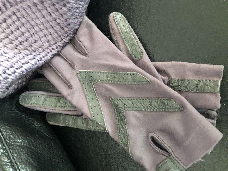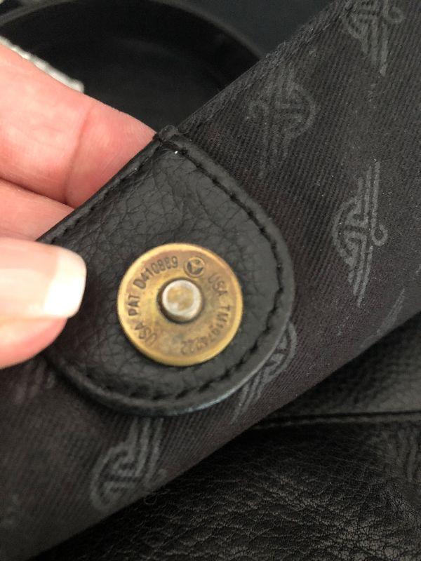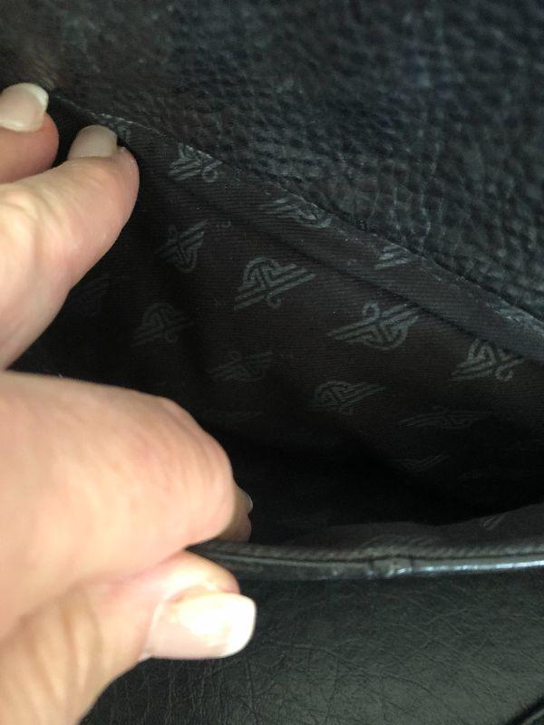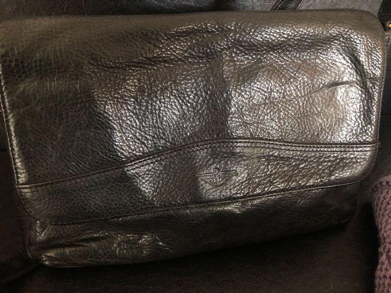 M909: Black Leather Handbag by Dockers. Isotoner Gloves and Knit Purple hat