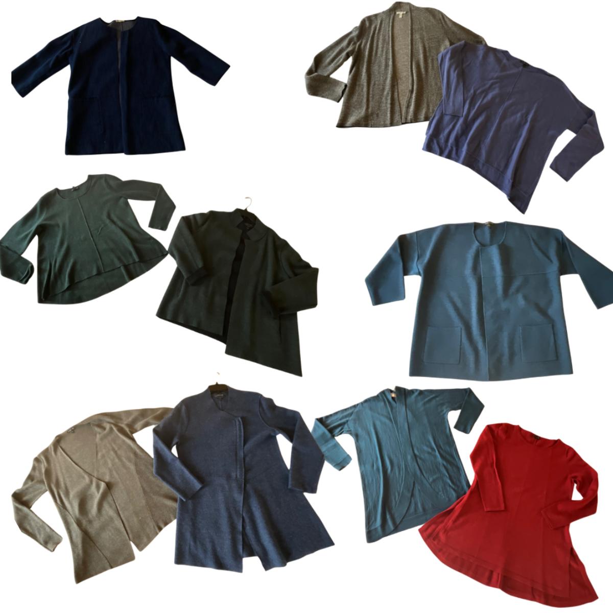 M969 Large Lot of Ladies EILEEN FISHER Knit Blend Blouses, Jackets, Cardigans