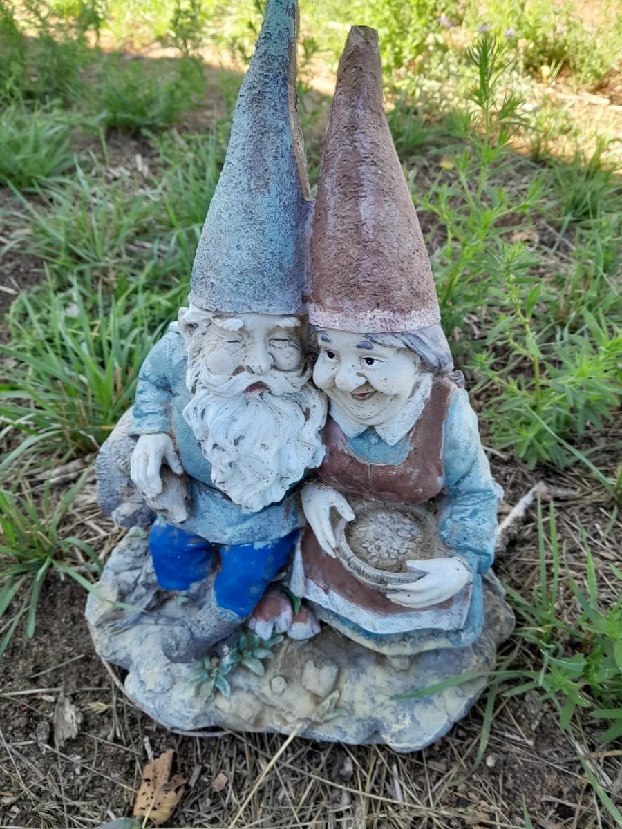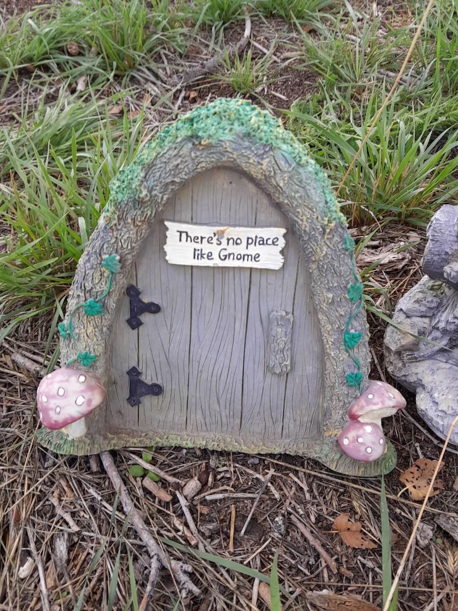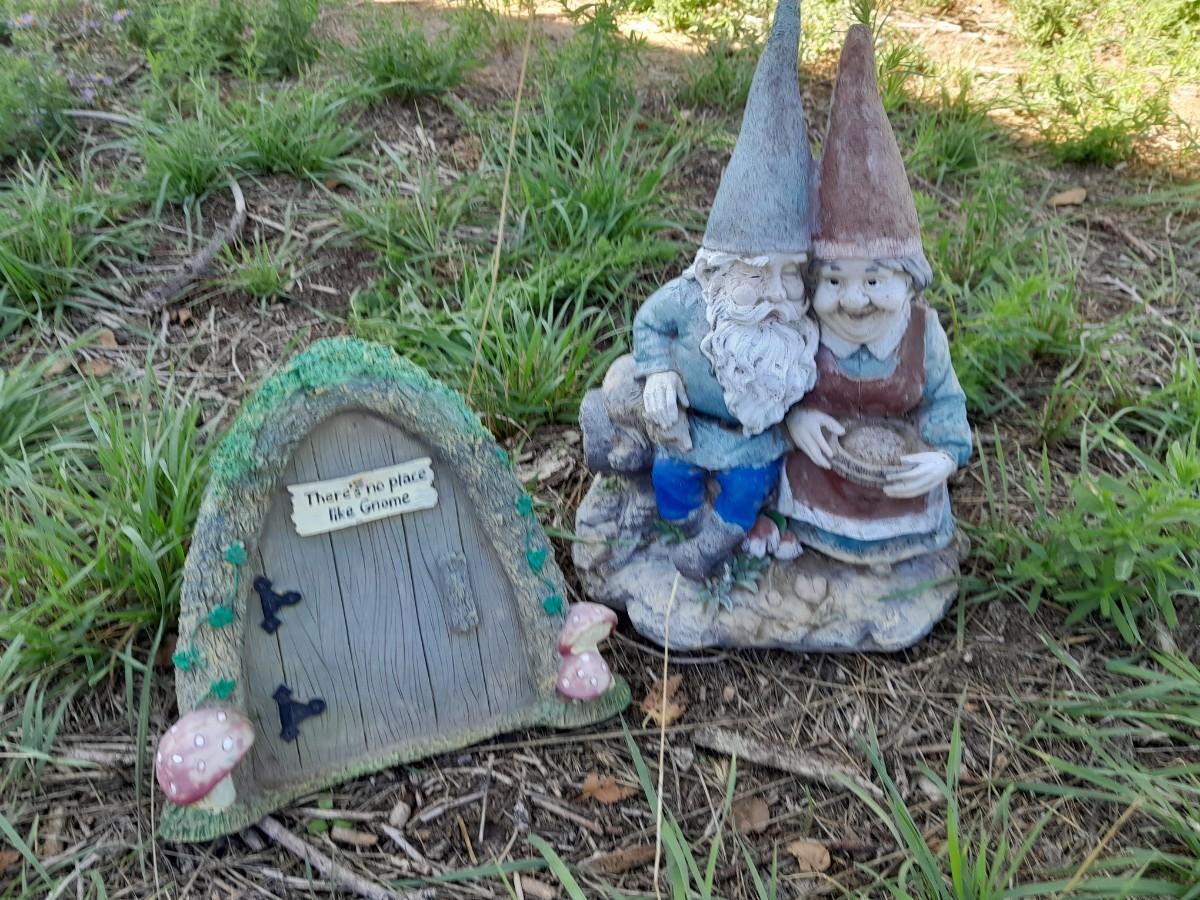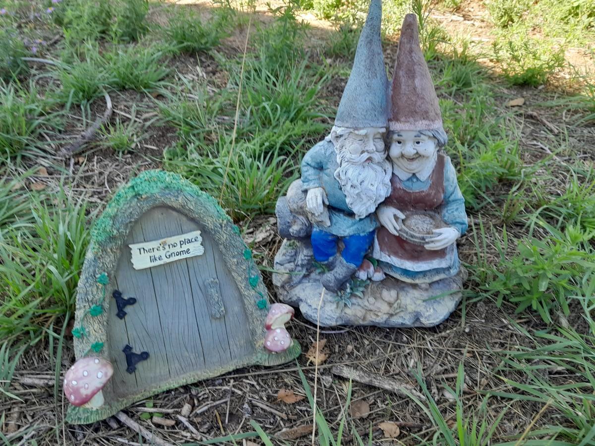 13" MA & PA GNOMES WITH DOOR THAT READS THERE'S NO PLACE LIKE GNOME