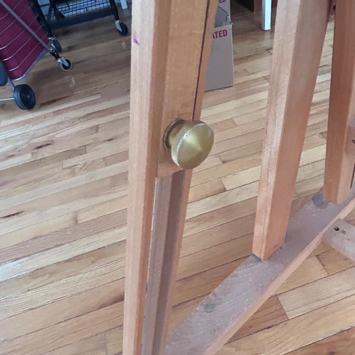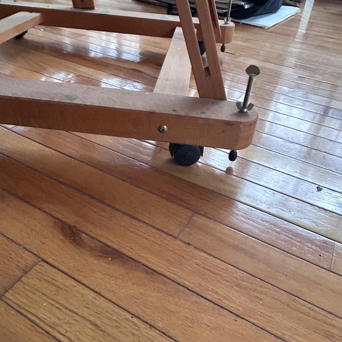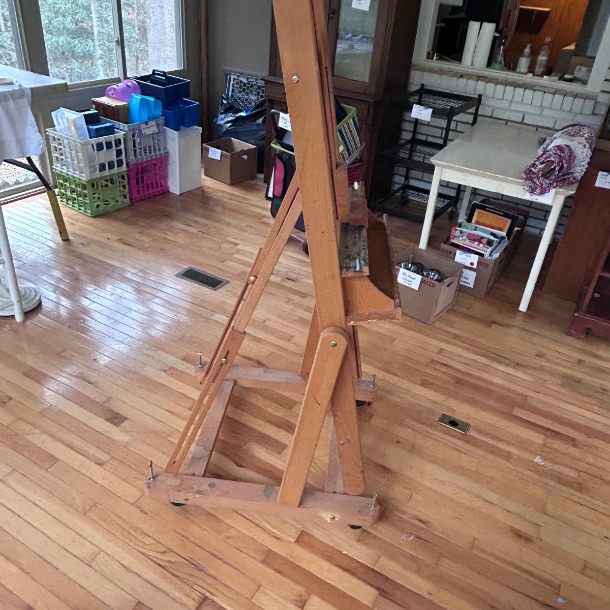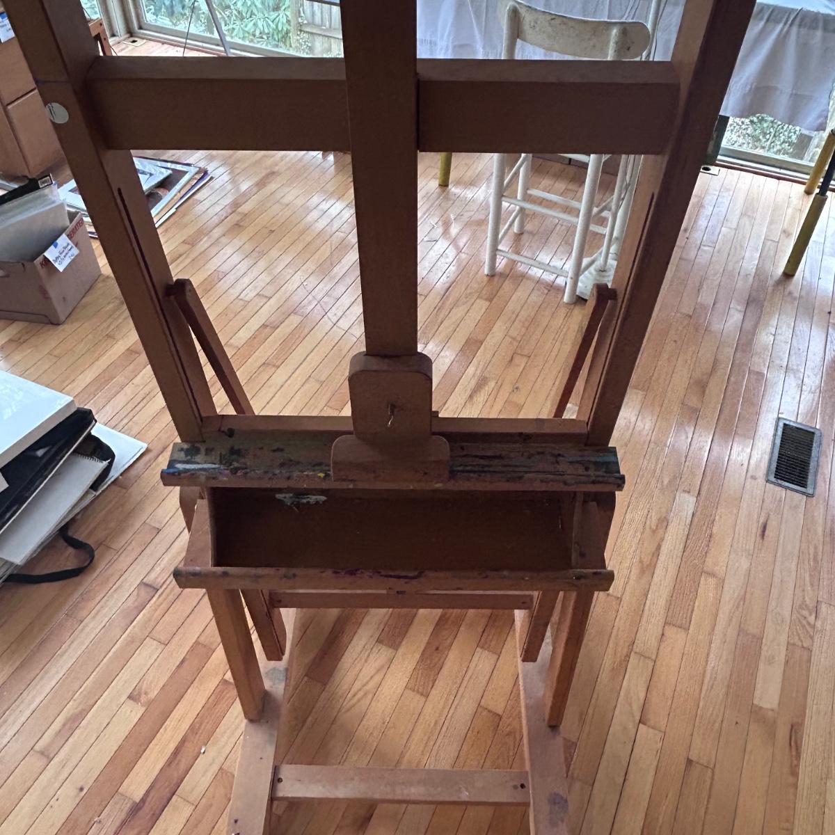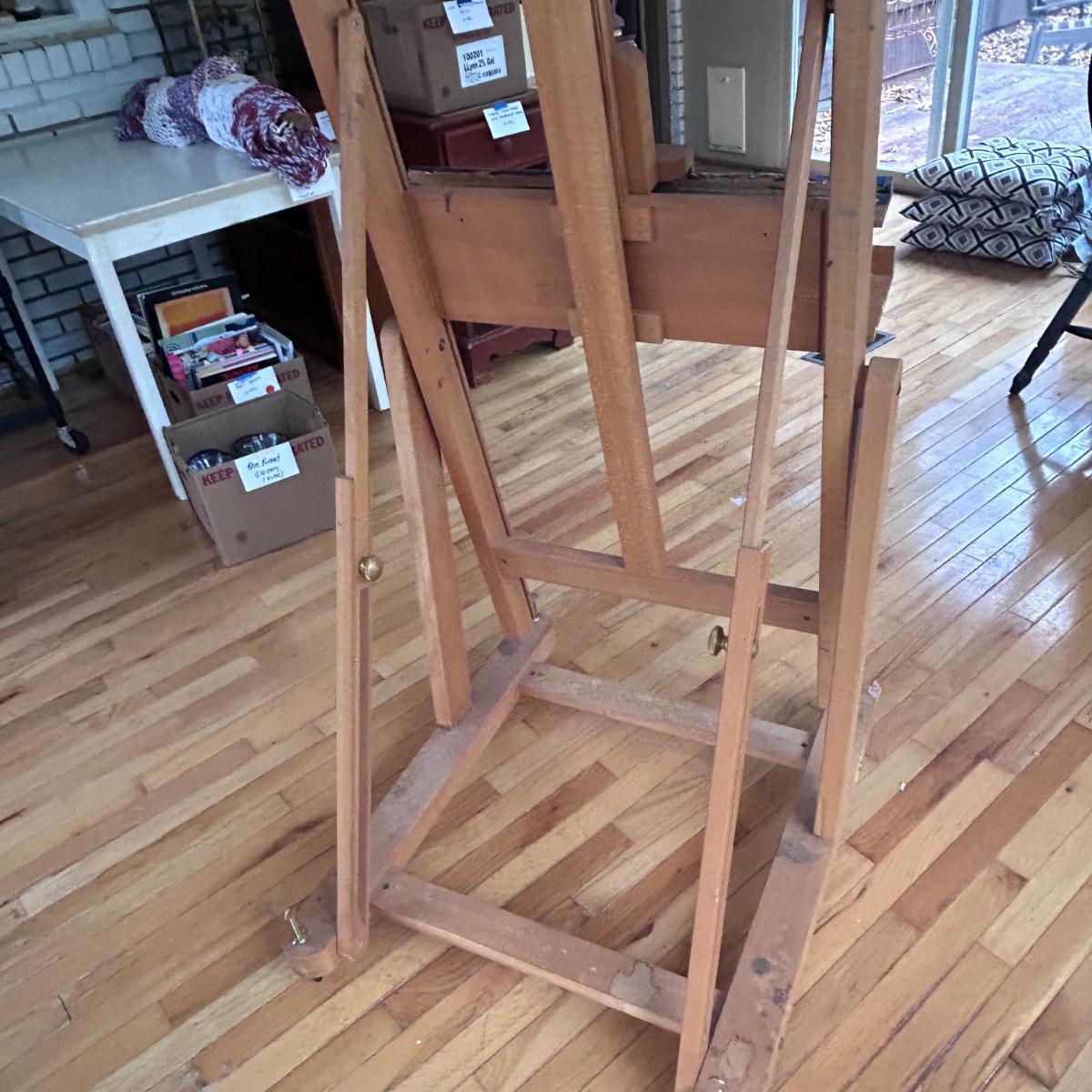This Mabef Studio Easel has all the adjustment hardware and is on wheels. There is paint from regular use but still has good life left in it. At lowest settings measure 32”x26.5”x69”. Local pick up only.