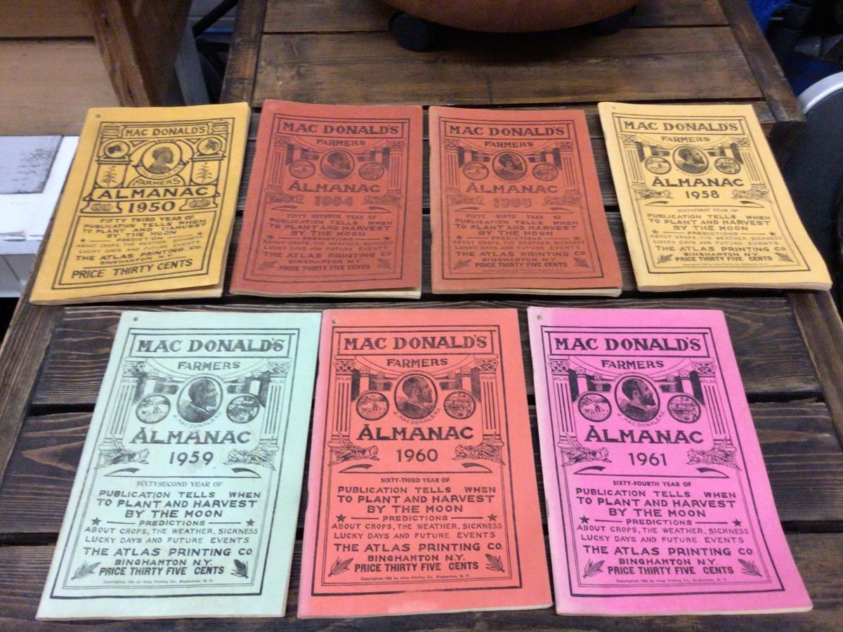 This is a great set of 7 Mac Donald’s farmer almanac over the years of 1950 thru 1961.