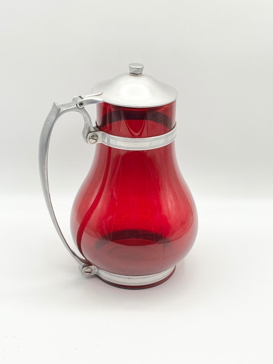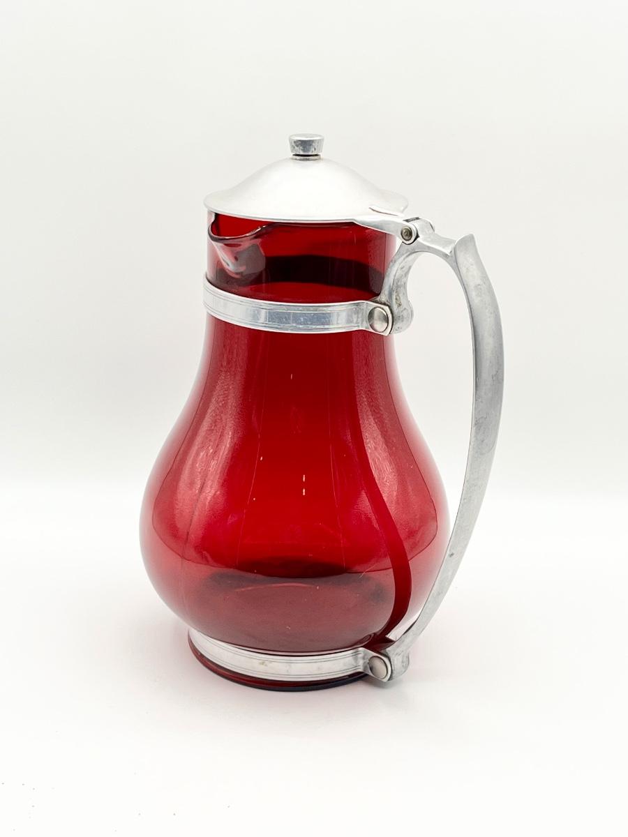MACBETH EVANS ~ Ruby Red Pitcher With Aluminum Handle