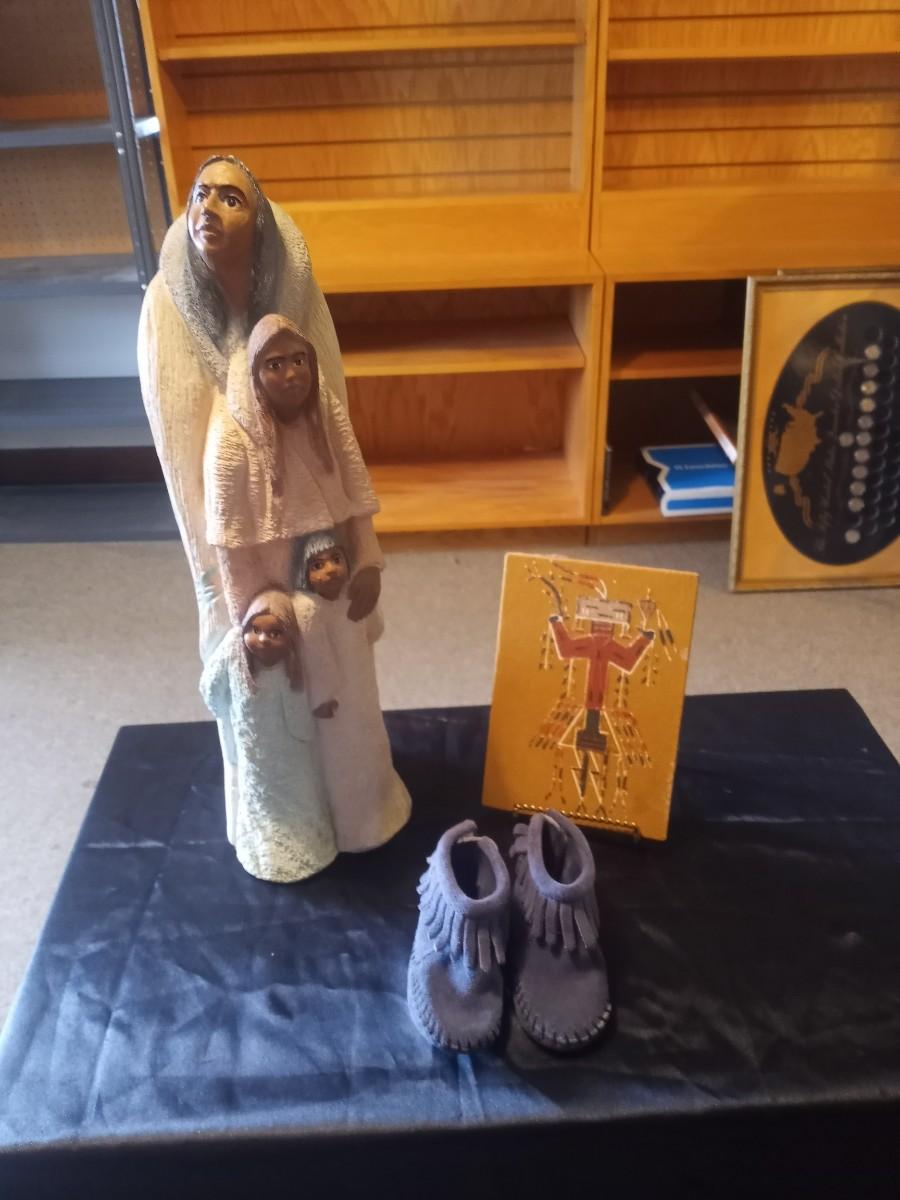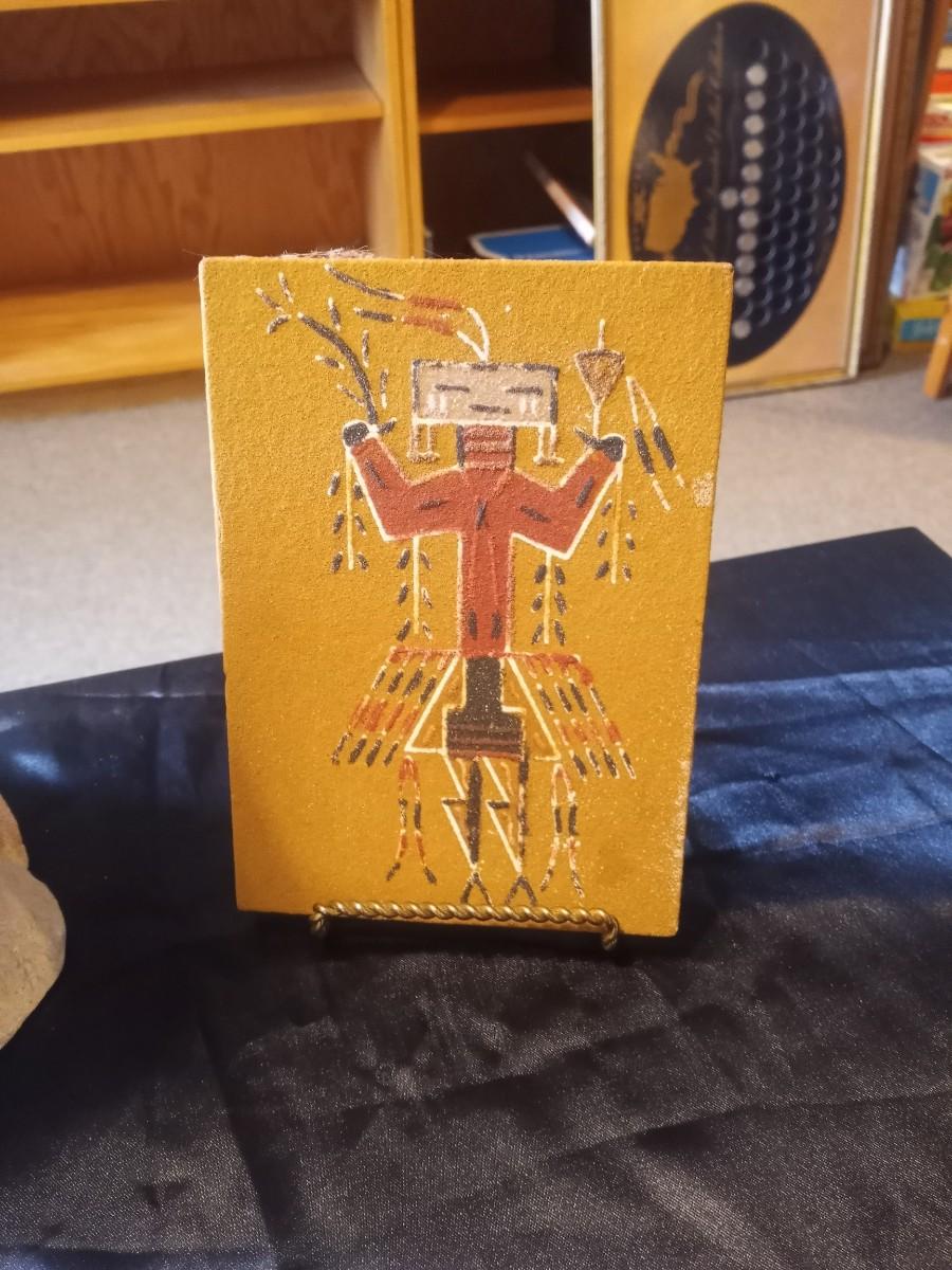 MACCASINES NATIVE AMERICAN FIGURINE AND SAND PLAQUE