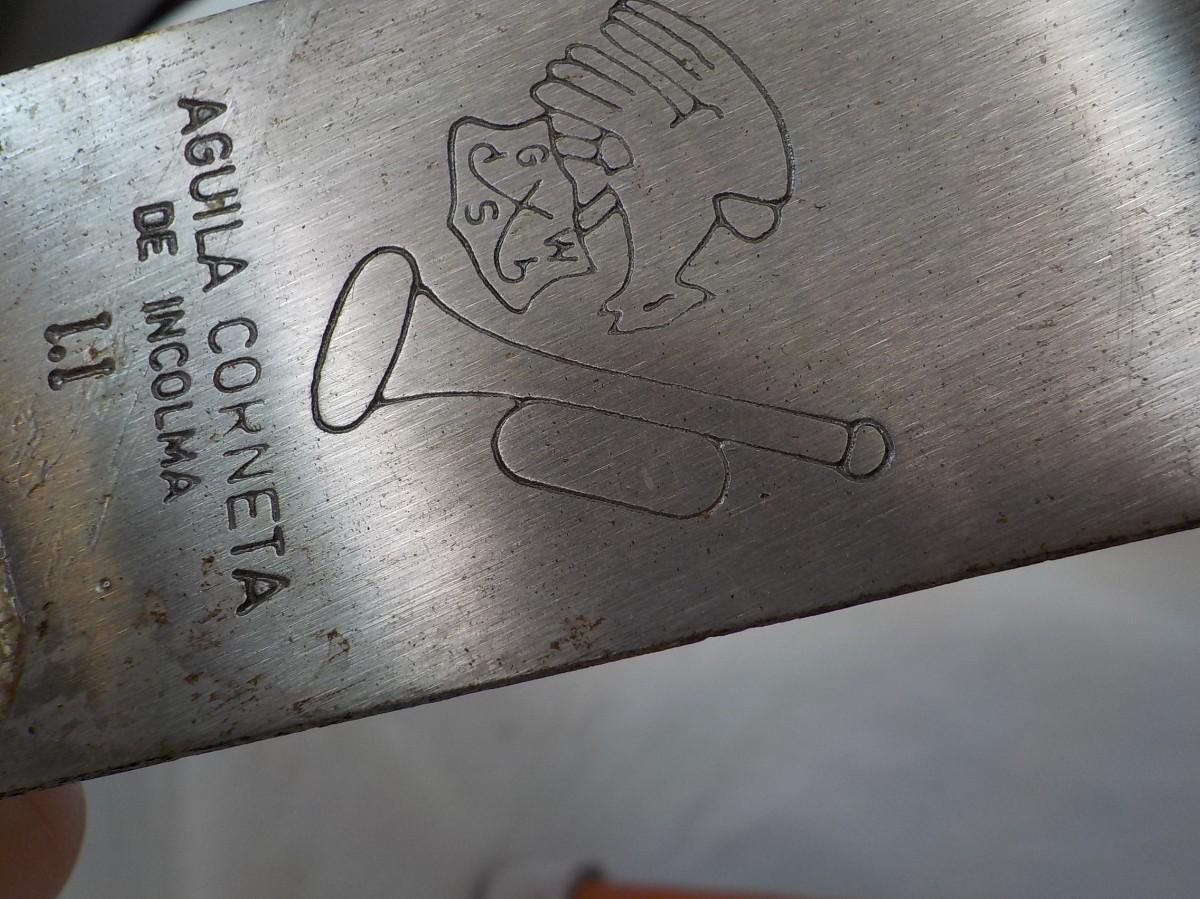 Machete and scabbard Brazil " Aguila Corneta ". 25in. est. $30 to $80.