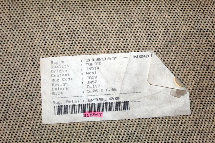 Machine made wool rug, India, 5.6' x 8.6' , very good condition, $899 retail tag verso