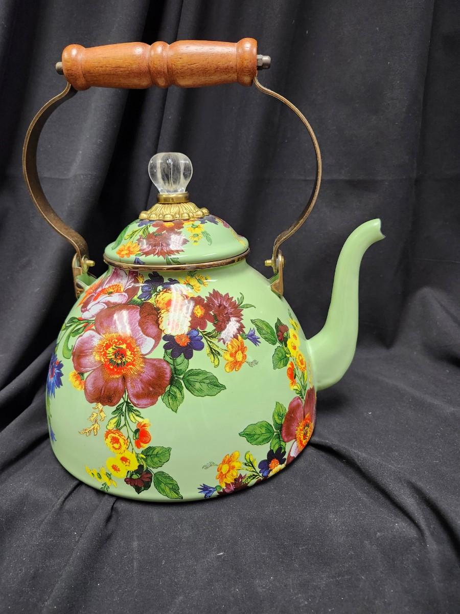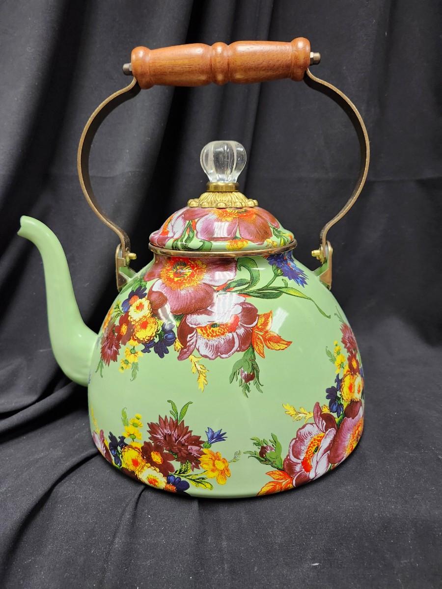 MacKenzie Childs 2 Quart Green Flower Market Teapot