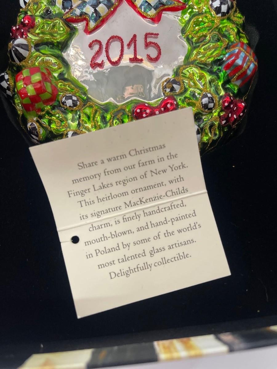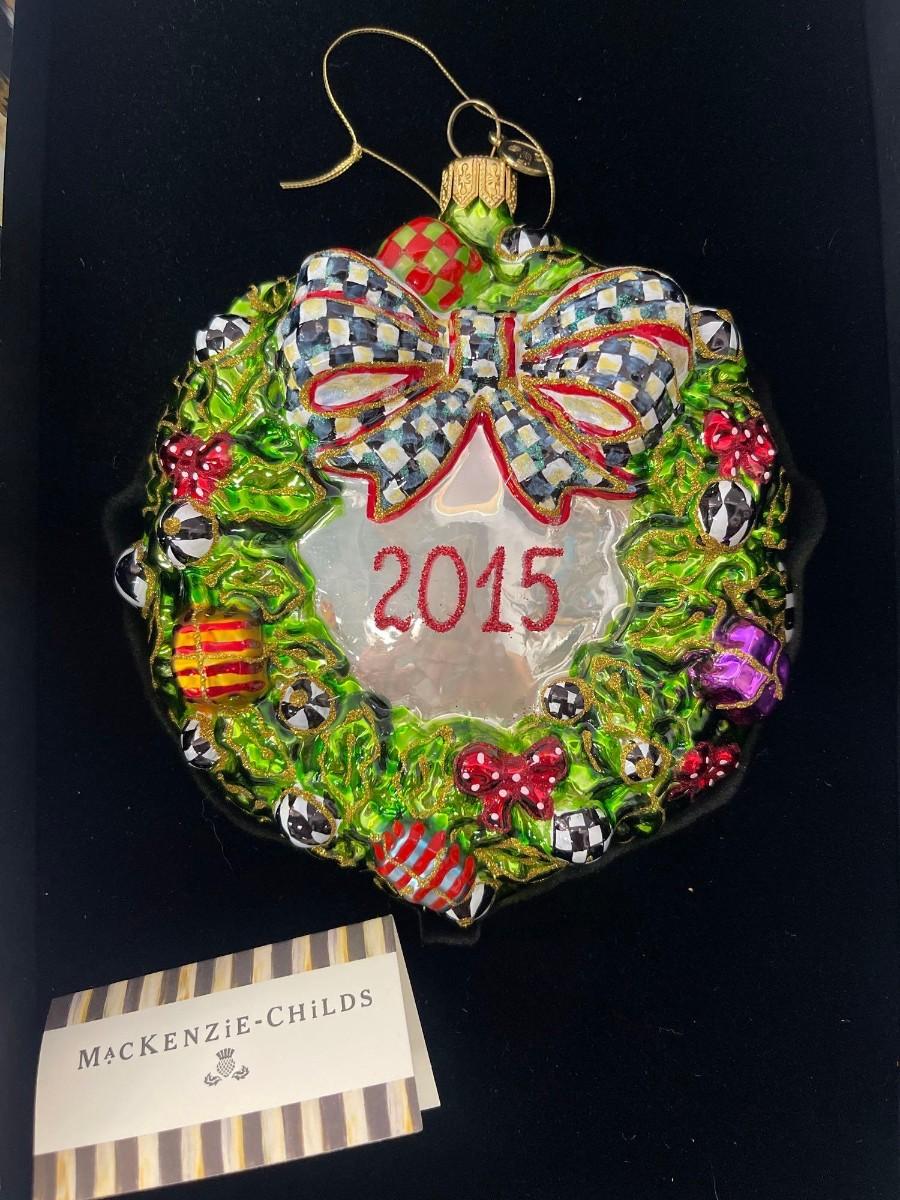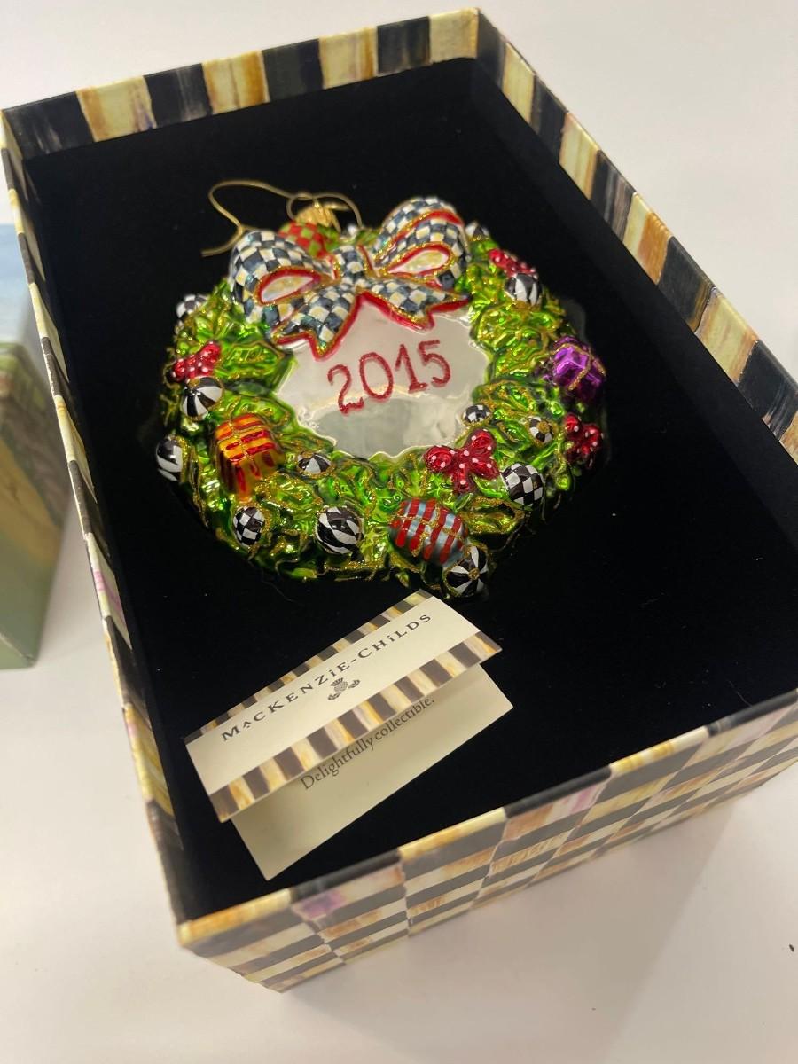 <p>Mackenzie-Childs 2015 Handmade Glass Ornament. Excellent Condition, comes in original box. </p>