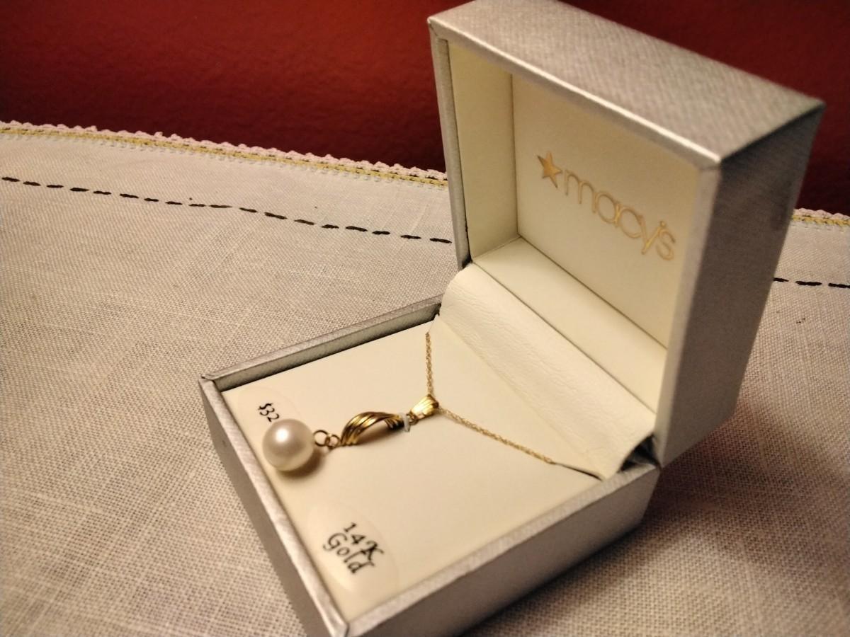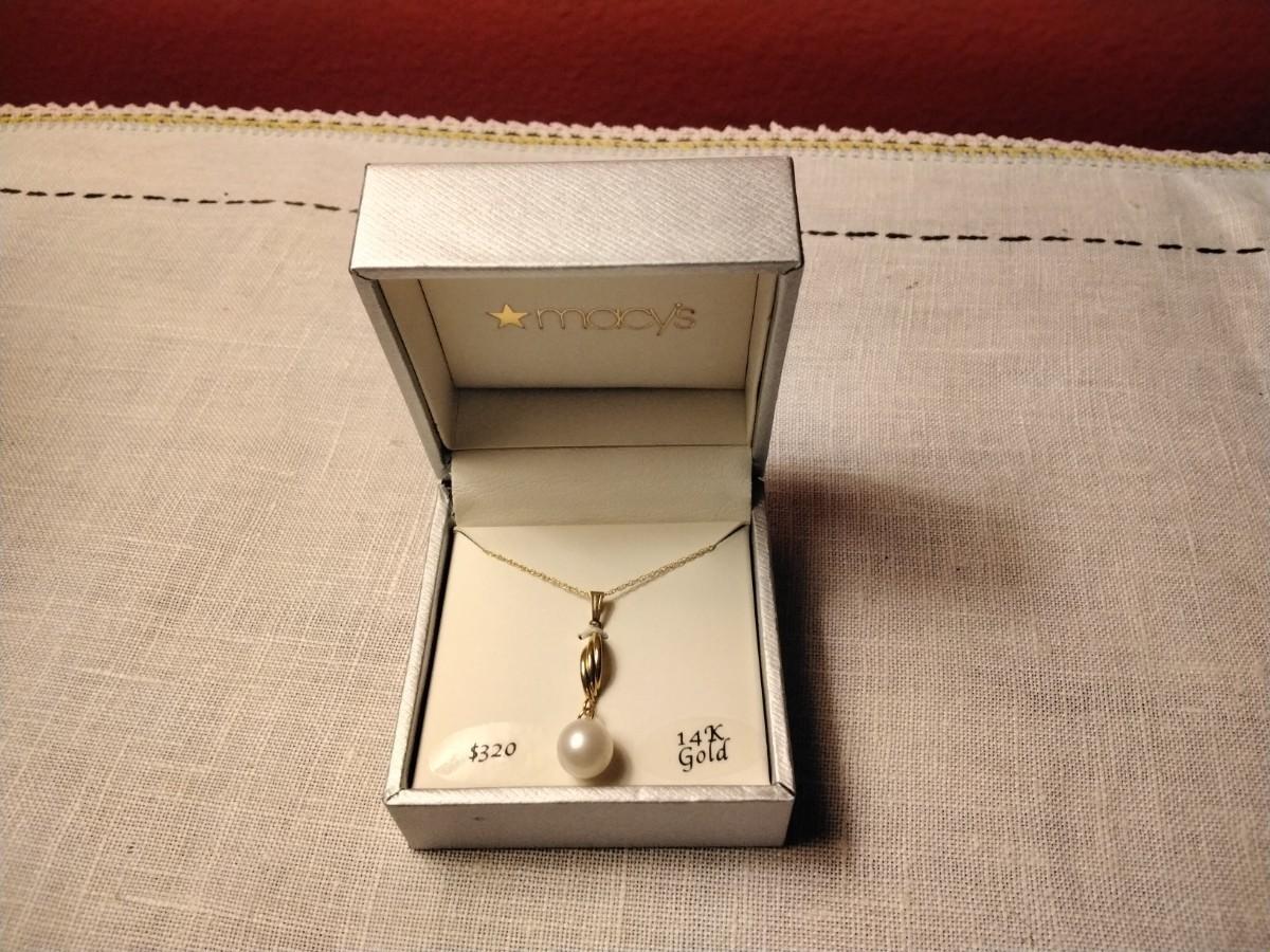 New Old Stock Warehouse Purchase. Still in box never removed solid 14k with a large gorgeous freshwater pearl. This necklace is just absolutely stunning