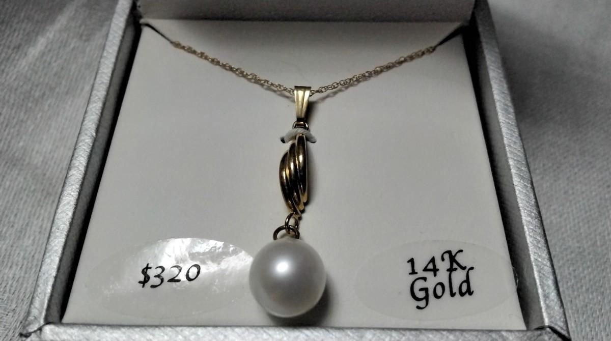 New Old Stock Warehouse Purchase. Still in box never removed solid 14k with a large gorgeous freshwater pearl. This necklace is just absolutely stunning